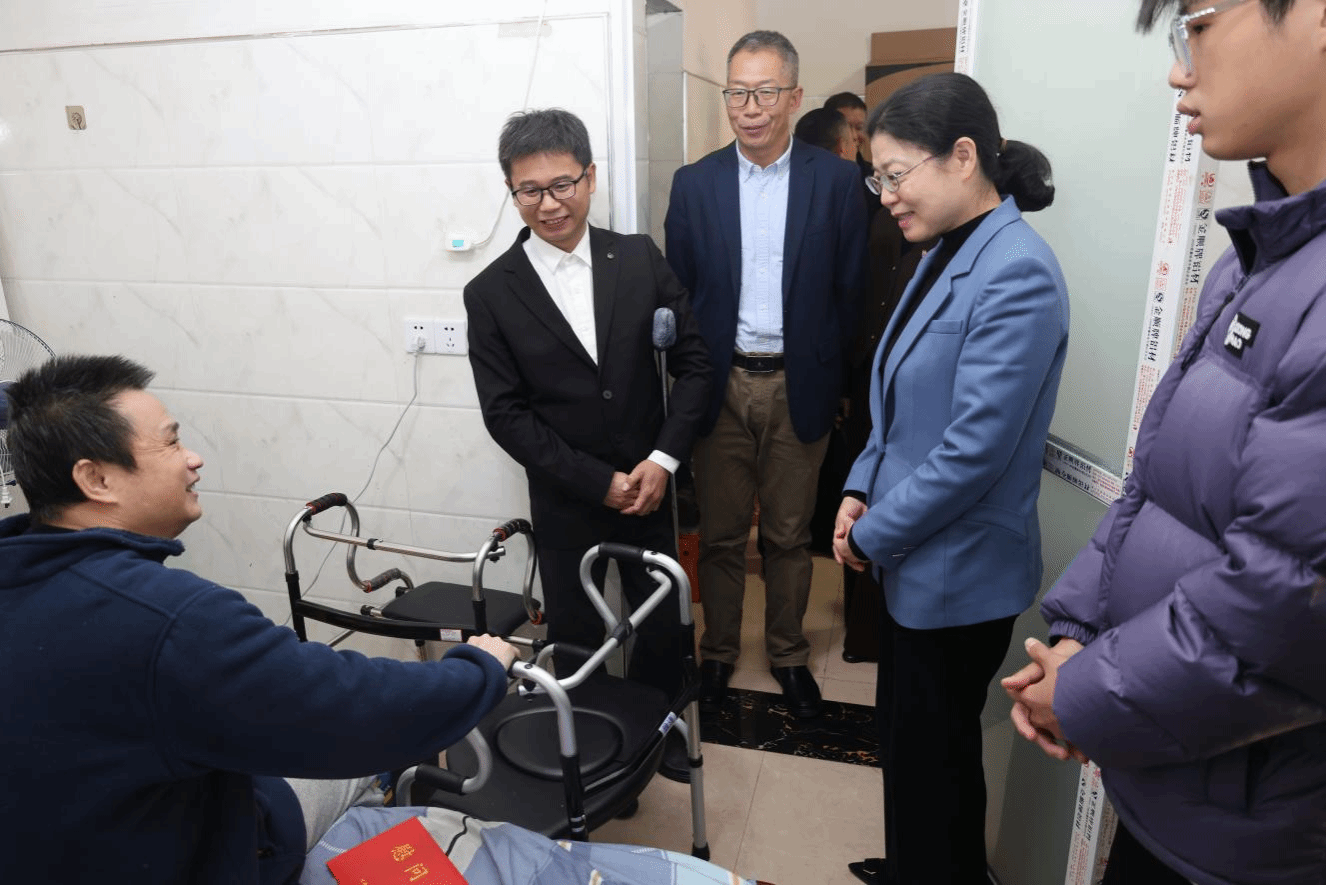 在学生住处,饶冬梅与刘宏基和江子强同学及其陪读家长深入交流,细心询问他们的学习生活、身体状况和实际困难,对家长们的陪伴与辛勤付出表示慰问,并送上慰问金。饶冬梅充分肯定了残疾学生克服身体障碍、刻苦求学的坚强意志以及困难残疾人家庭子女在逆境中奋发前行、勇担家庭希望的宝贵精神。她指出,每一位残疾青年和残疾人家庭子女都是国家的未来和希望,他们的成长成才是残疾人事业全面发展、社会文明进步的重要体现。她勉励同学们以全国自强模范为榜样,将自强不息的精神力量转化为刻苦学习、锤炼本领、回馈社会的实际行动。