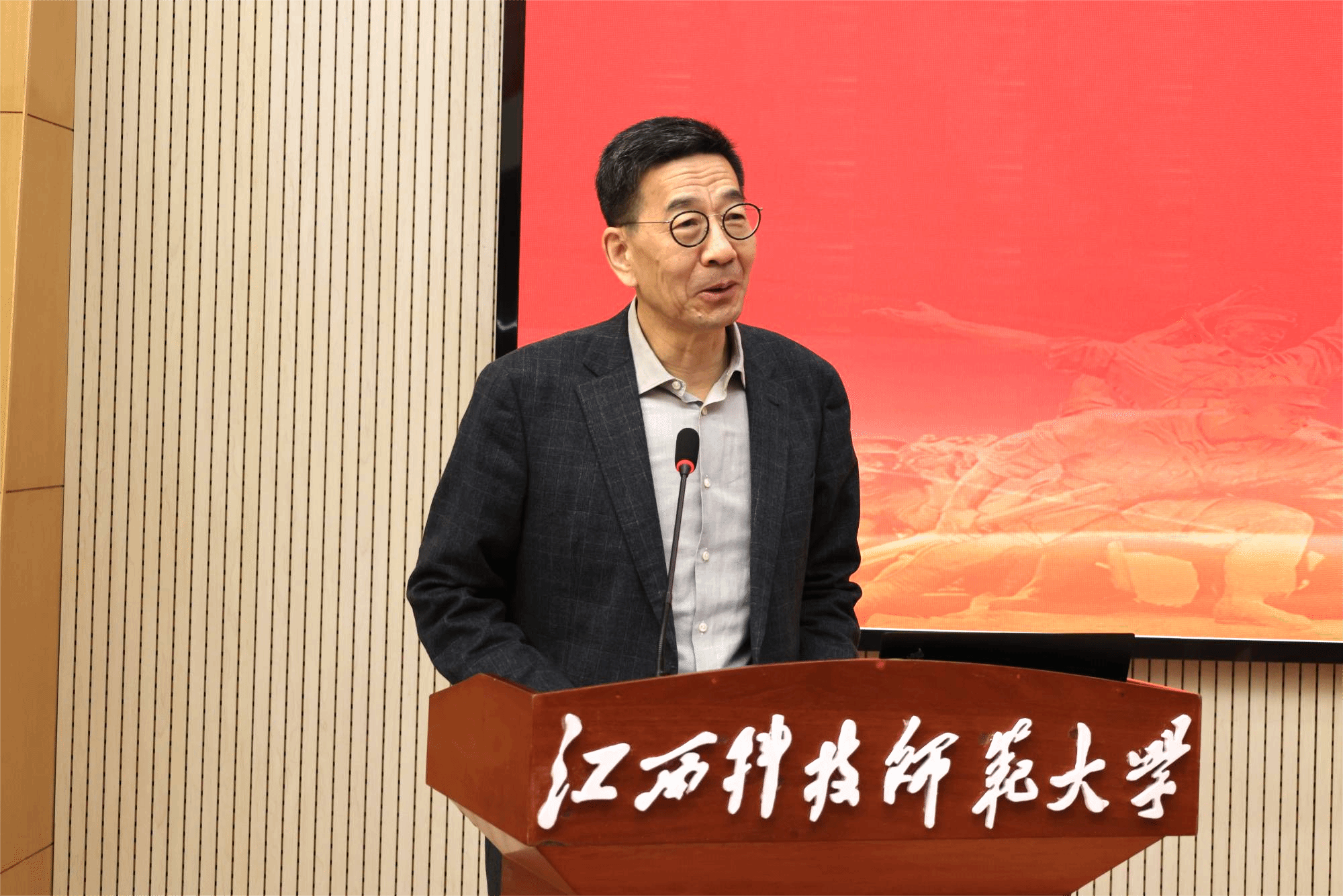 我校党委副书记、校长袁雄教授指出,江西是一片充满红色记忆的红土地,南昌是人民军队的诞生地。在江西南昌举办此次学术研讨会,意义重大,使命光荣。南昌起义,不仅是一座彪炳史册的建军历史丰碑,更开启了中国共产党建军治军兴军强军的精神宝库,是中国共产党人精神谱系中光辉灿烂的早期篇章。作为扎根江西红土地的高等院校,江西科技师范大学始终将传承红色基因、培育时代新人作为办学育人的鲜明底色和重要使命。学校也将以此为契机,努力将学校建设成为研究、宣传、传承中国共产党人精神谱系,特别是建军精神的重要阵地和人才培养基地,为推动红色基因代代相传作出应有的“科师大”贡献,努力为实现中华民族伟大复兴提供持久而深厚的精神支撑,肩负起时代责任。