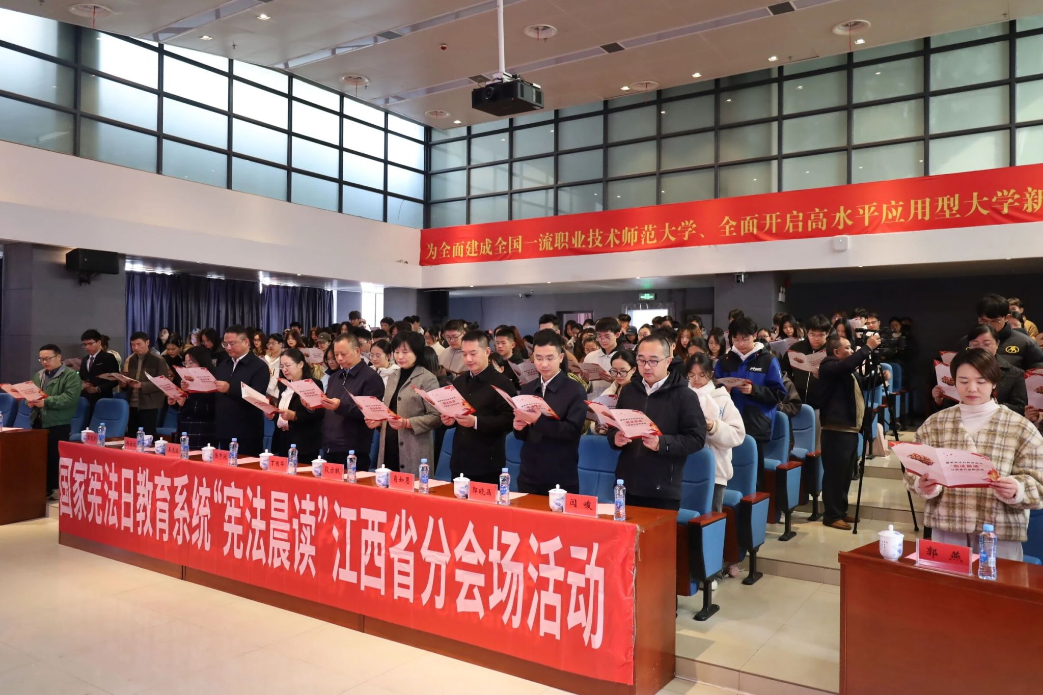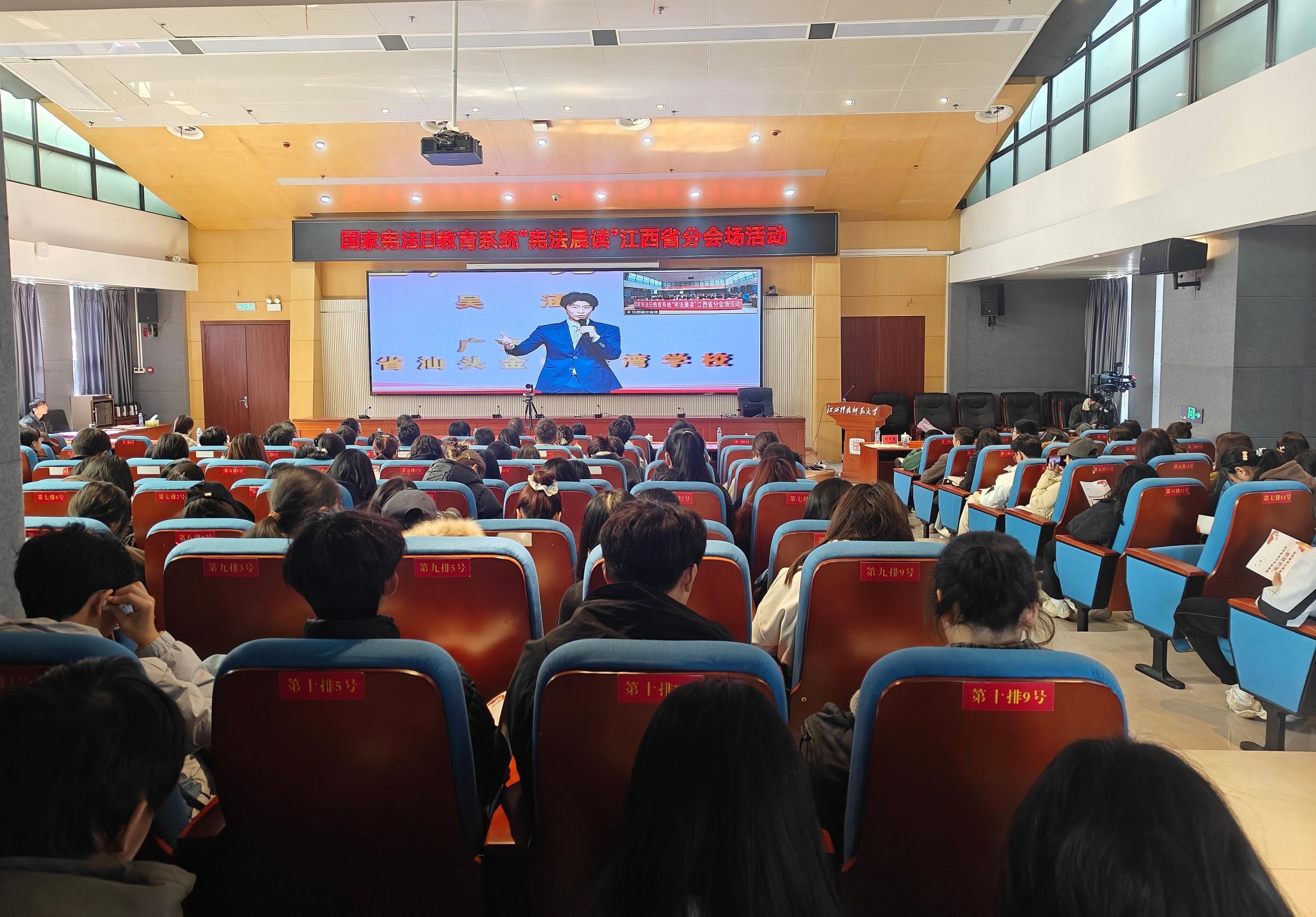 12月4日,第十二个国家宪法日,江西省在我校设立国家宪法日教育系统“宪法晨读”江西省分会场,与教育部全国主会场实时连线,同步开展宪法晨读活动。省法院二级高级法官段亦枫,省教育评估监测研究院院长、党委副书记丁国华,省司法厅二级巡视员张中澜,团省委副书记肖如恩,我校副校长吴志远,省委依法治省办秘书处刘午庚,省教育厅政策法规处郭晓晶,省法院四级调研员杨云欣,省检察院第九检察部副主任闫峻,团省委学校部干部郭燕,省委教育工委研究室、省教育厅政策法规处胡安琪,省委教育工作领导小组秘书组应子琪以及我校200余名师生代表参加活动。