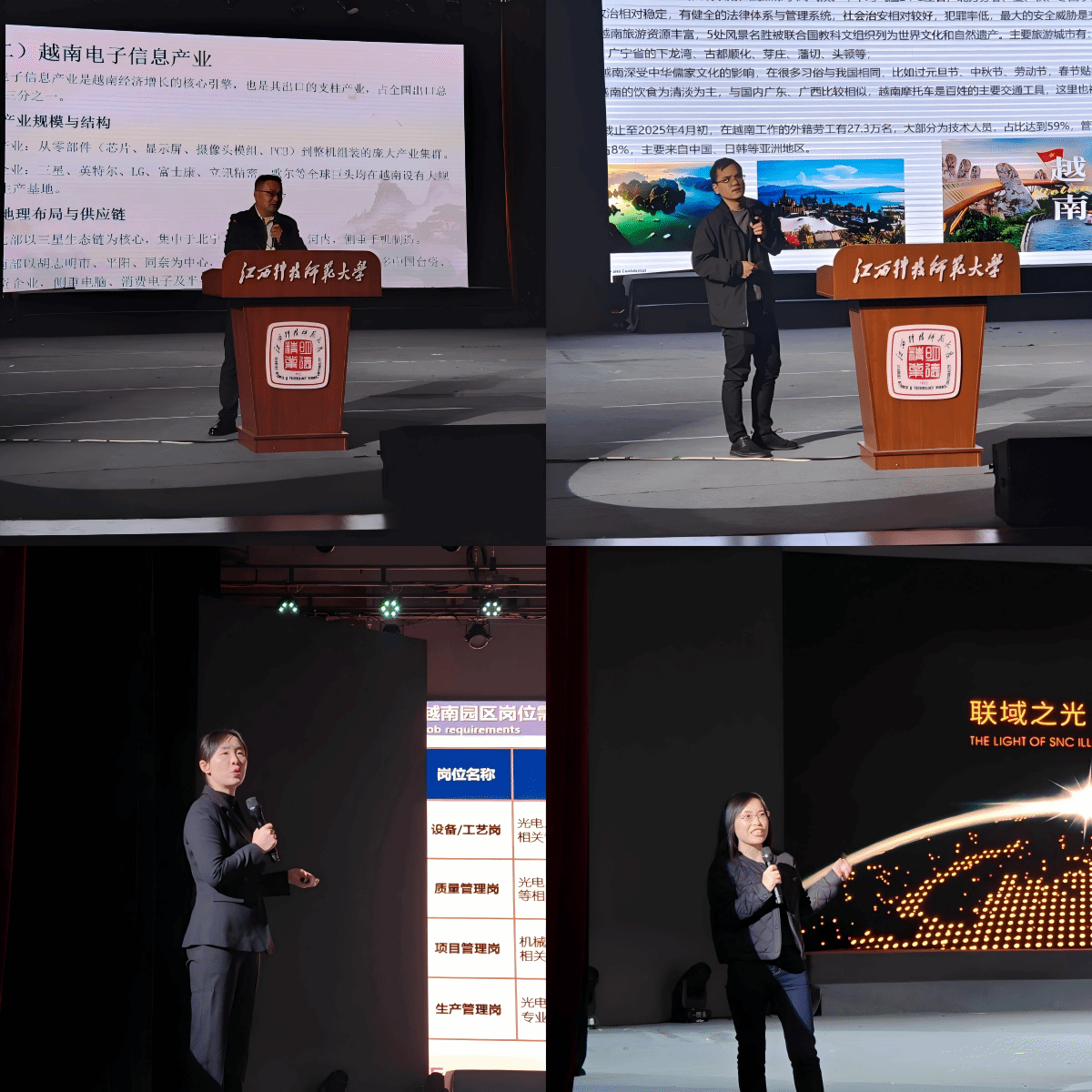 本次宣讲会旨在主动服务“一带一路”倡议,培养具有国际化视野、精通外语、熟悉管理、技能过硬的高素质应用型人才,拓宽学生就业渠道与发展空间。通过播放视频,全面生动地展示了越南的地理文化、经济产业及中越合作前景。