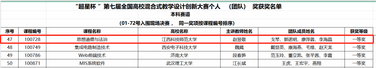 备赛期间,团队成员赵昱敬、戈琴、郭诺明、廖萍蓉、李海晶深入研究混合式教学前沿理念,紧密结合课程特点与育人目标,系统重塑教学内容,反复演练、录制视频、打磨材料,克服了诸多技术与教学融合的难题,体现了高度的团队凝聚力和严谨的教学态度。此次获奖是学校持续深化思政课教学改革、推动现代信息技术与思政课深度融合的成果,充分展现了思政课教师队伍的教学水平与创新活力。团队负责人赵昱敬表示,将以此次获奖为动力,继续深化教学改革,努力打造学生真心喜爱、终身受益的思政“金课”。