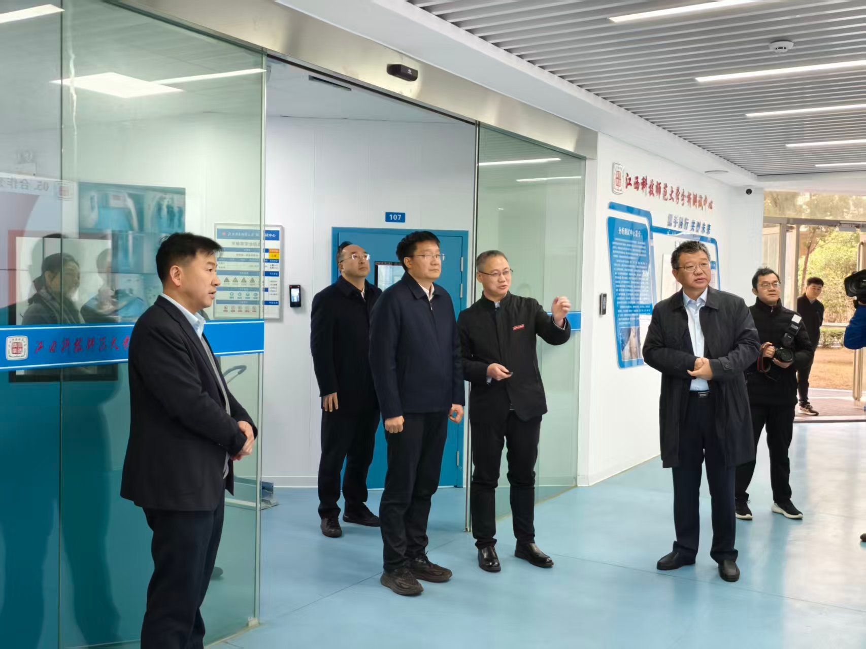 在枫林校区分析测试中心,高世文察看实验室环境与高端仪器设备,详细了解中心服务高校、科研机构和企业的情况。在红角洲校区,高世文先后来到创新创业学院、学校图书馆,听取学校在“双创”教育和竞赛中取得的突出成绩介绍,了解学校博士点建设、红色文化研究等情况。他希望学校继续强化学科建设,为南昌培养引进更多高层次人才,助力南昌相关产业技术升级。