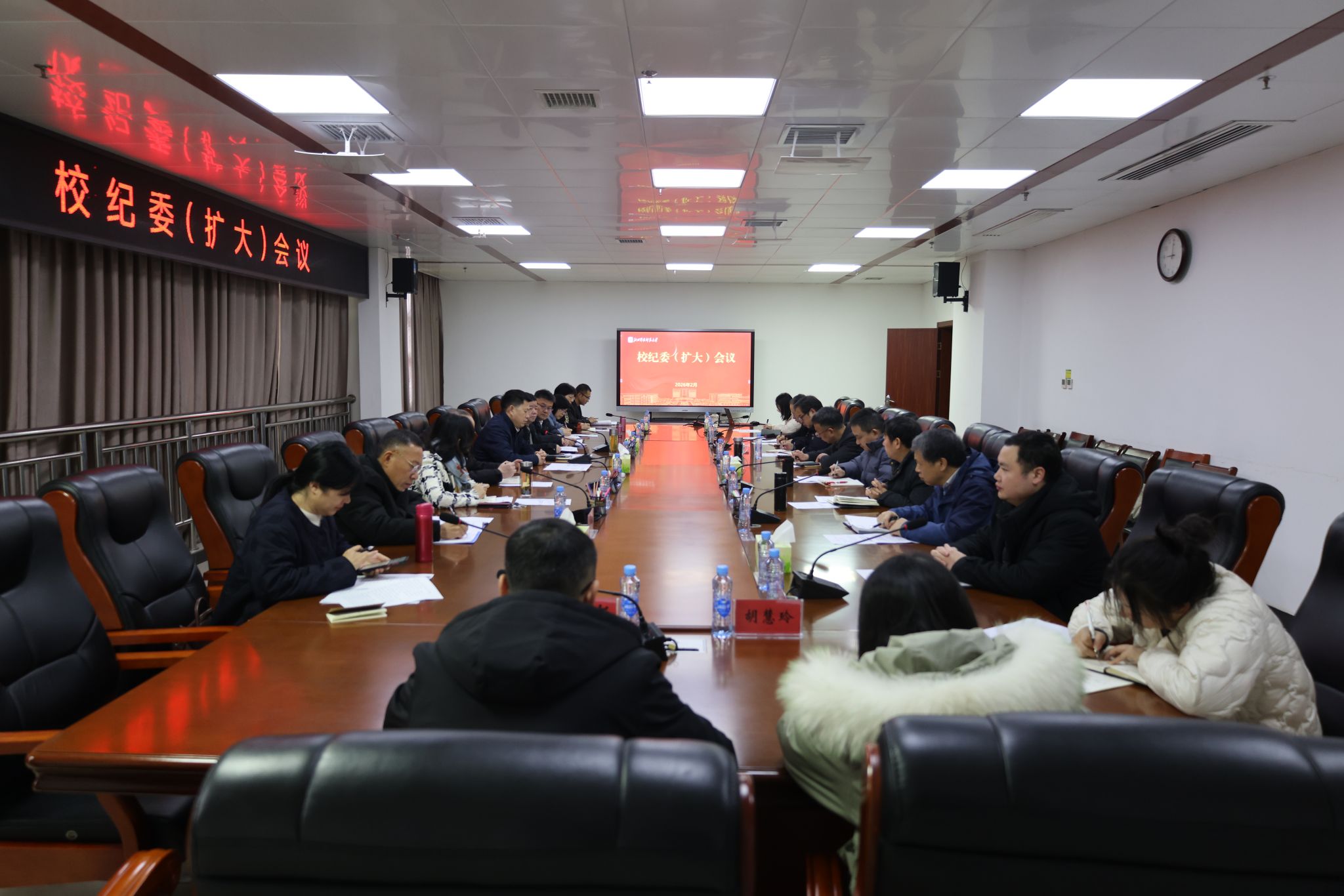 20262月6日,校纪委(扩大)会议召开,传达学习省纪委十五届六次全会精神,研究贯彻落实举措,谋划2026年学校纪检监察工作。校党委委员、纪委书记、省监委驻校监察专员陈沈平主持会议,校纪委委员出席。会议指出,省纪委十五届六次全会是在全省“十五五”开局之年召开的一次重要会议,充分彰显了省委一以贯之推进全面从严治党的鲜明态度和坚决打赢反腐败斗争攻坚战持久战总体战的坚定决心。全会总结成绩客观全面,部署任务重点突出,具有很强的指导性、...