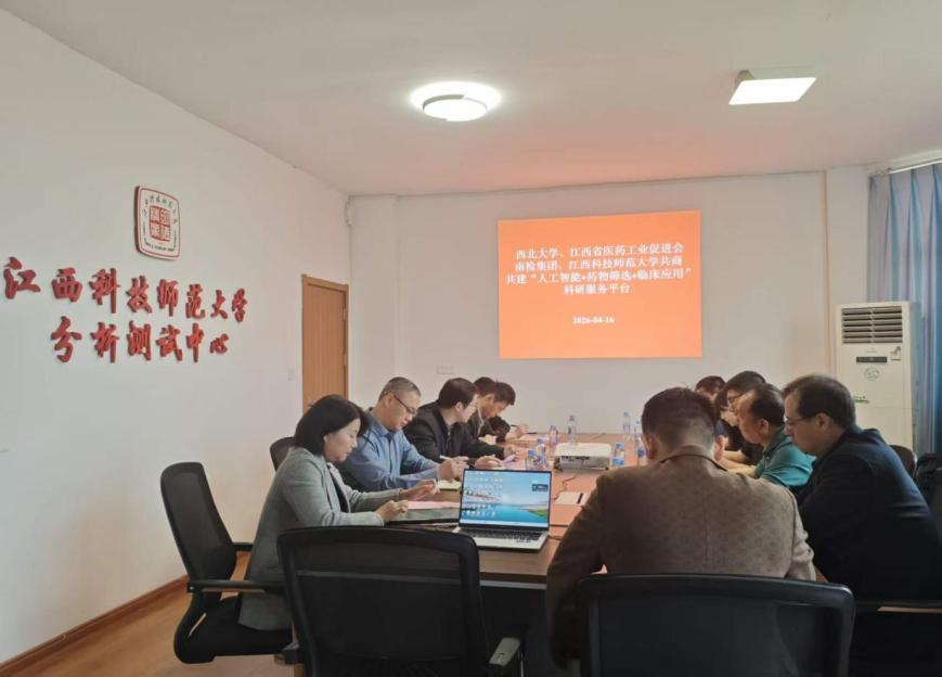 20264月16日,由江西省医药工业促进会牵头,我校与西北大学张策教授团队在分析测试中心会议室召开共建“人工智能+药物筛选+临床应用”高水平科研服务平台座谈会。南昌市政检验检测认证集团董事长谭琳、副校长王小磊出席。王小磊对各方代表表示欢迎。他介绍了我校药学学科优势,并表示此次合作将整合多方资源,直击新药研发周期长、成本高、成功率低的行业痛点,构建AI赋能的药物研发创新体系,助力江西医药产业创新升级。座谈会上,与会各方代表进行了深入交流,...