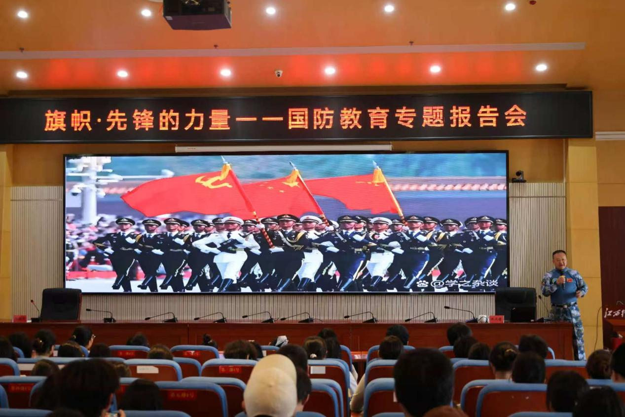 20264月19日,江西省国防教育研究院、江西科技师范大学在红角洲校区图书馆学术报告厅举行“旗帜·先锋的力量”国防教育专题报告会。逐梦深蓝讲师团发起人、海军石家庄舰原政委林风谦应邀主讲。林风谦以九三阅兵中率先亮相的仪仗方队为切入点,深刻阐述了旗帜作为信仰与引领的核心意义。他结合自身经历,深情讲述了海军石家庄舰出访南美洲期间,华侨老人与国旗之间的感人故事,诠释了旗帜所承载的信仰与精神力量。他指出,旗帜是引领方向、...