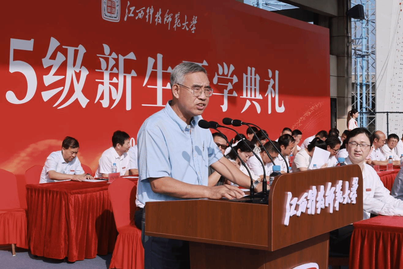 9月26日上午,学校在红角洲校区西区田径场举行2025级新生开学典礼。校党委书记裴鸿卫,校长袁雄,校党委副书记刘国云,副校长李玉保、郑鹏武、刘刚、吴志远、王小磊,优秀校友代表、北京师范大学数学科学学院原副院长丁勇教授,上海校友会执行会长、上海儒商社网络集团有限公司董事长朱甫知,南昌校友会常务副会长、江西马力智能科技有限公司执行总裁周浩然出席。刘国云主持。