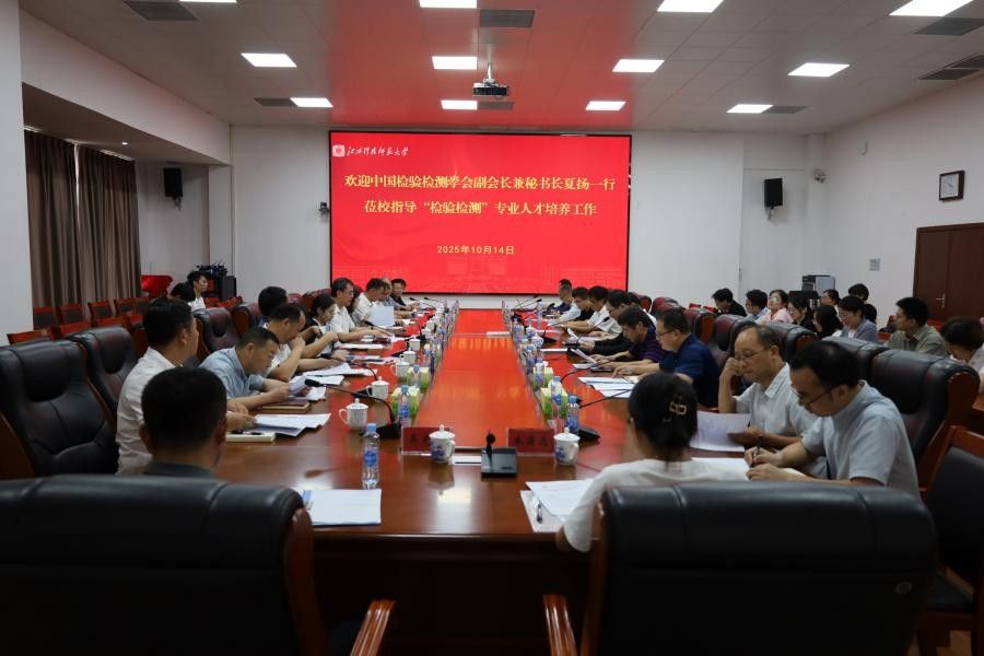 10月14日下午,中国检验检测学会副会长兼秘书长夏扬一行来校指导“检验检测”专业人才培养工作。校党委书记裴鸿卫、校长袁雄、副校长王小磊陪同调研。