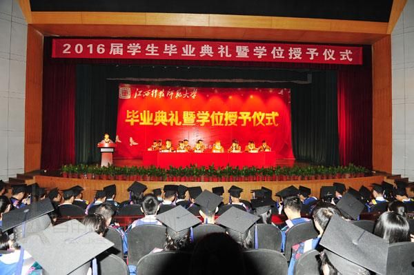 毕业典礼在庄严的国歌声中拉开帷幕。校党委副书记池泽新代表学校宣读了江西科技师范大学关于准许毕业和授予学位的决定。副校长朱爱莹宣读学校关于表彰2016届优秀毕业生的决定。校领导为优秀毕业生代表颁发优秀毕业生荣誉证书并为毕业生代表颁发毕业证书。