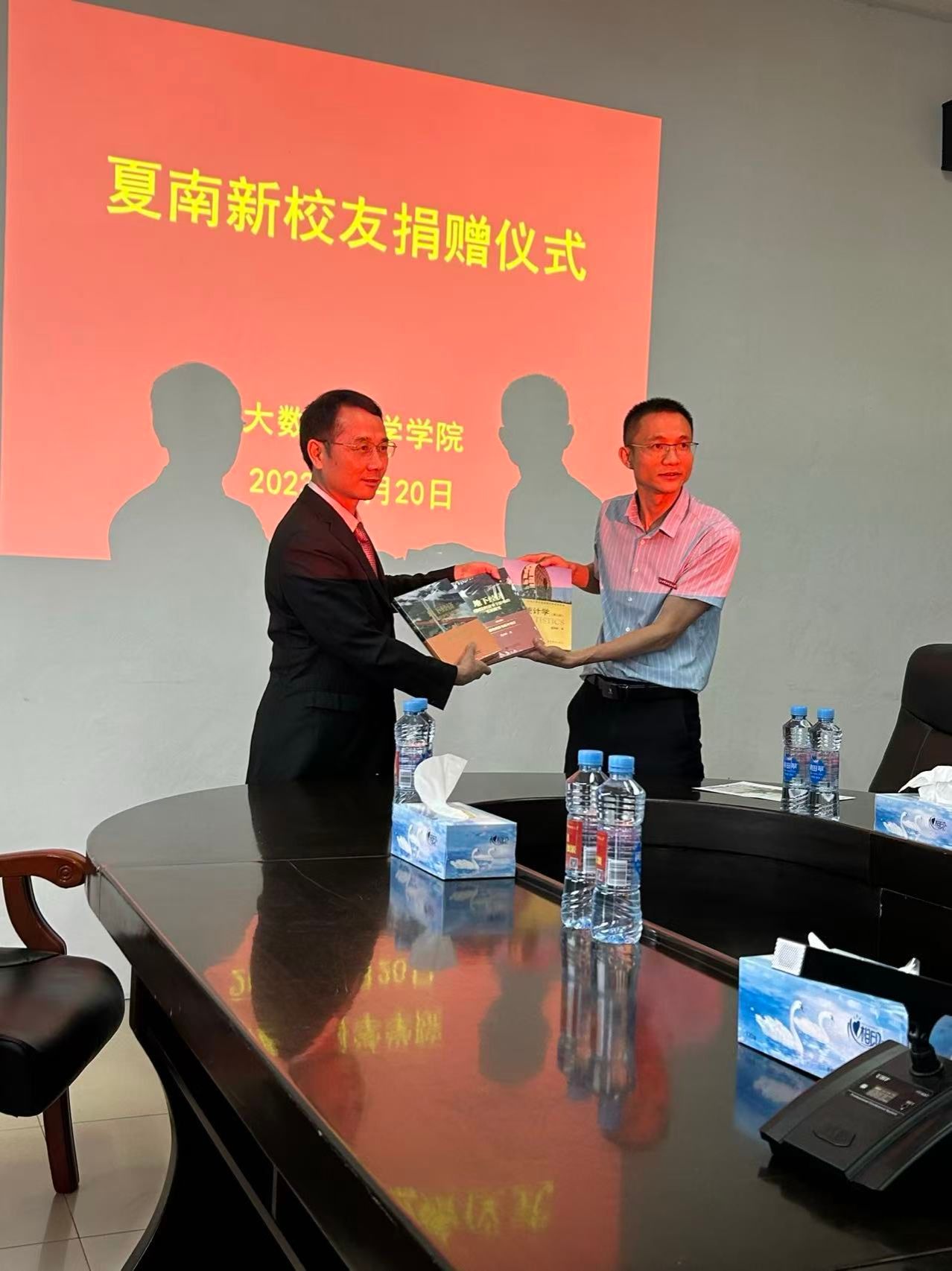 图8 夏南新教授向数学科学学院赠送三本独立撰写的著作