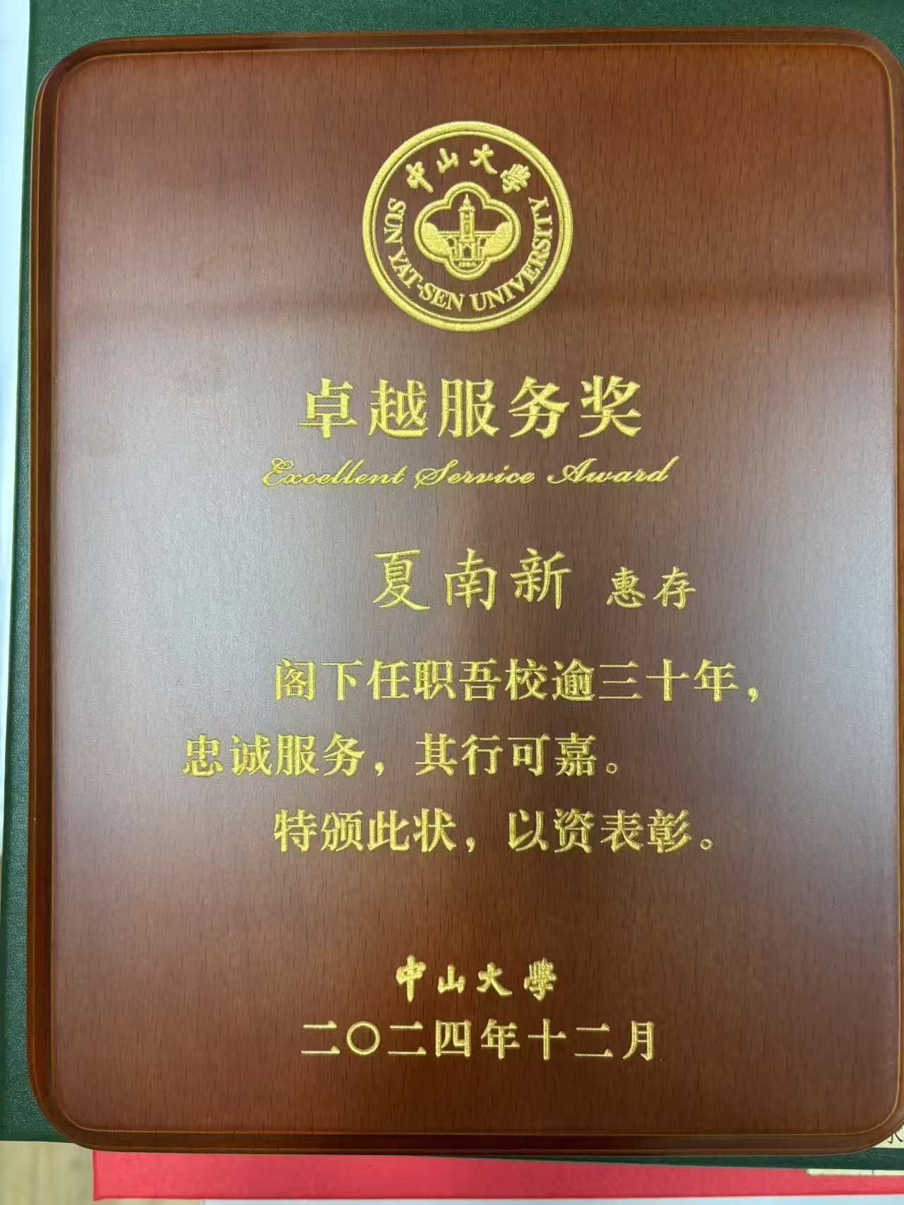 图4 2024年12月,夏南新教授获中山大学“卓越服务奖”