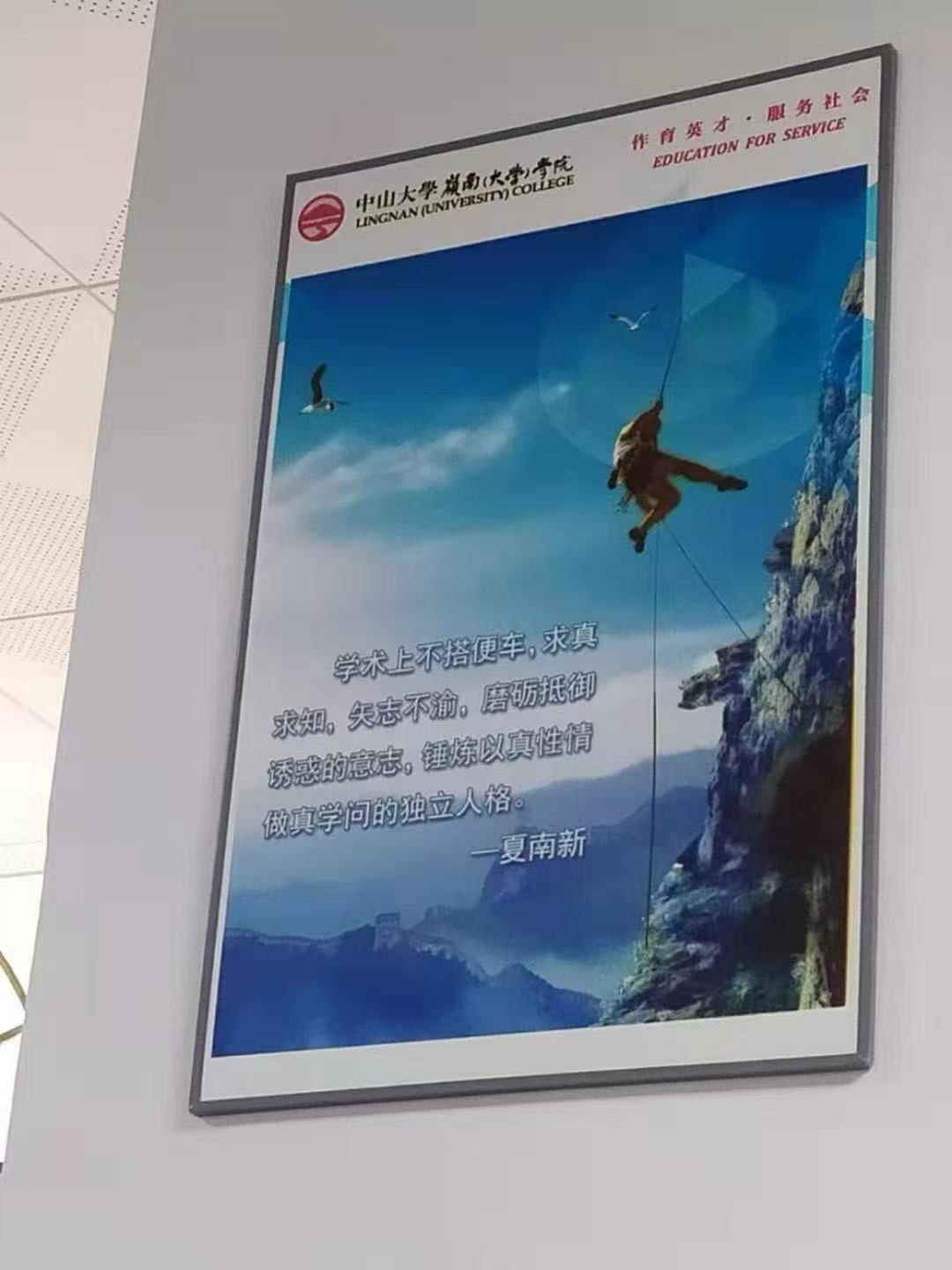 图5 夏南新教授的格言被置于中山大学岭南学院计算机实验室悬挂的镜框里