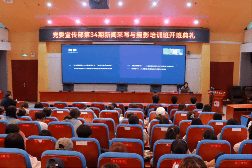 10月25日下午,学校在红角洲校区图书馆学术报告厅开展第34期新闻采写与摄影培训。省融媒体推进中心副主任、高级编辑谢永芳应邀授课。校党委委员、宣传部部长余玉荣主持。
