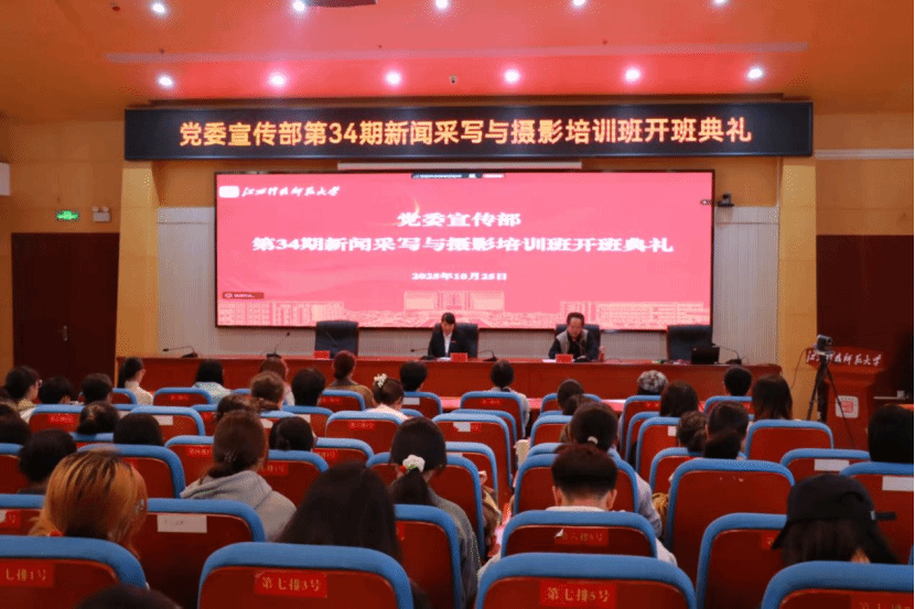 10月25日,党委宣传部第34期新闻采写与摄影培训班开班典礼在学校红角洲校区图书馆学术报告厅举行。校党委委员、宣传部部长余玉荣出席并以“认知与定位”为题为培训班作第一讲。