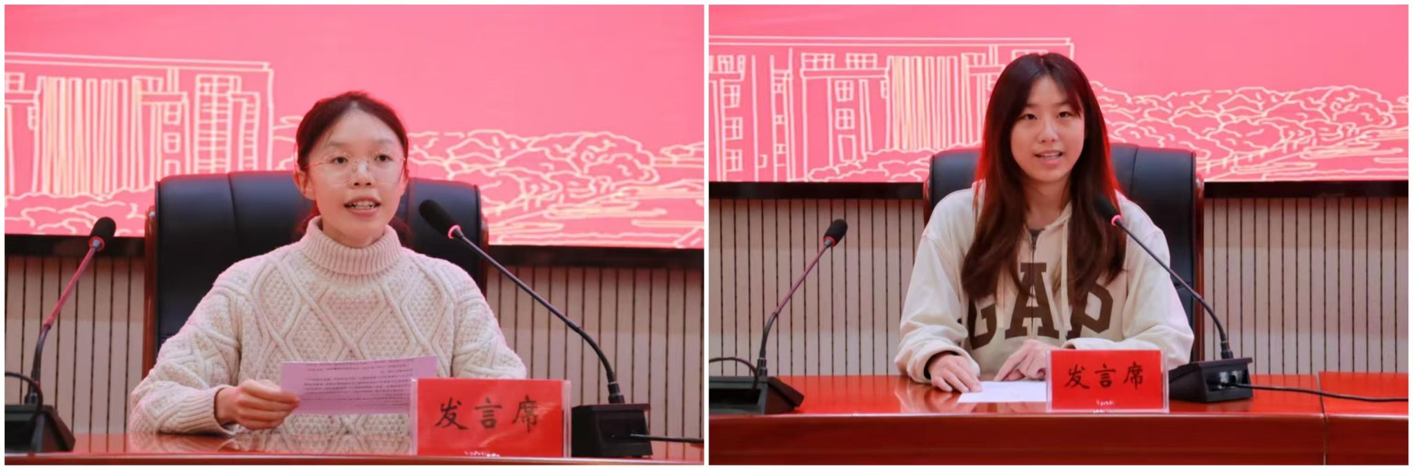 典礼上,培训班新学员代表、2025财会管理中英(1)班邱果,全媒体学生记者团团长、2023思政班葛韵凝分别发言。