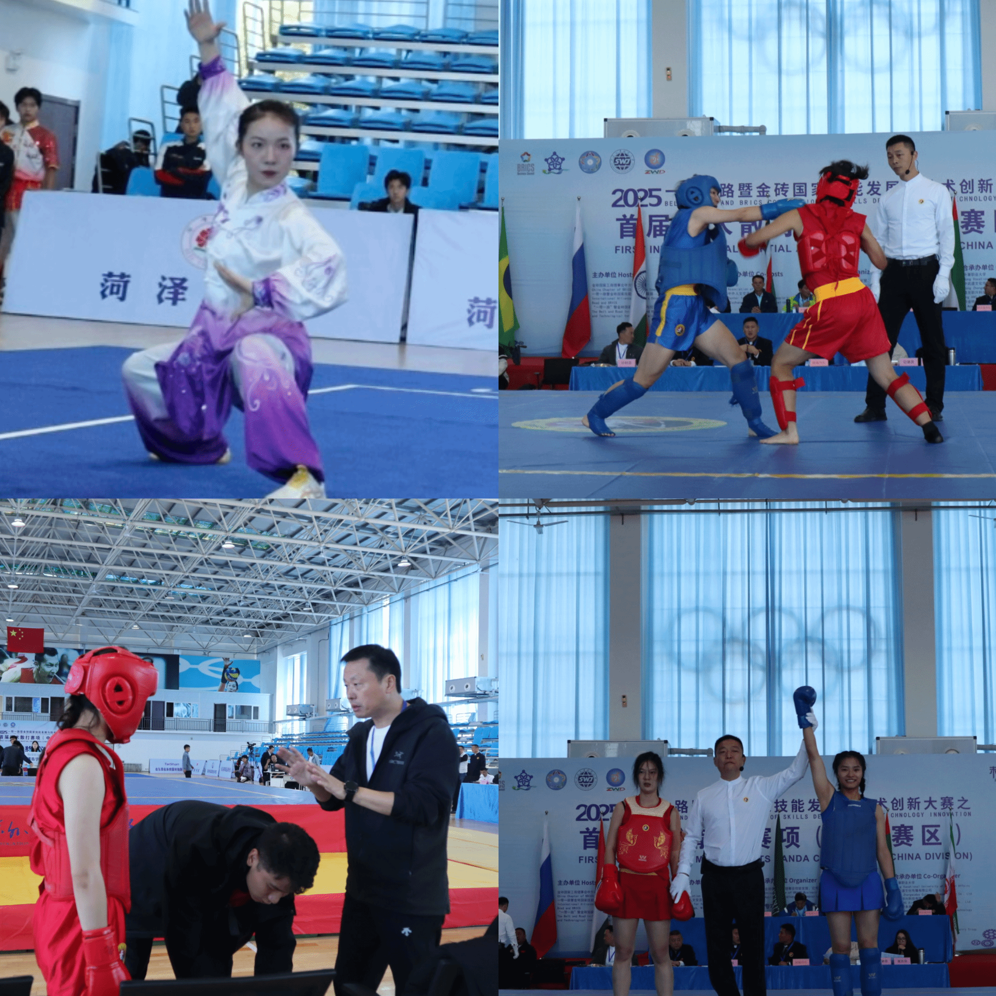 近日,2025一带一路暨金砖国家技能发展与技术创新大赛之首届武术散打赛项(中国赛区)在山东外事职业大学闭幕。我校武术散打队与武术套路队共同参赛,经过六天激烈角逐,共荣获全国一等奖3项、全国二等奖8项、全国三等奖1项,充分展现了我校学子扎实的专业技能素养与出色的竞技实力。