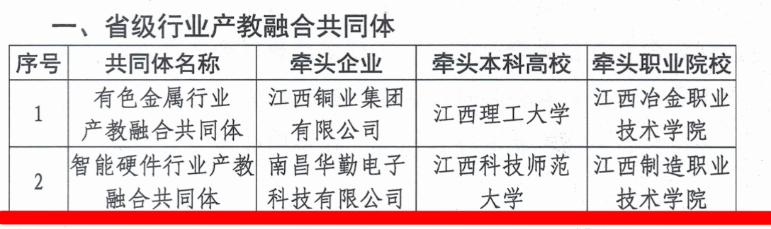 为响应国家产教融合战略部署,提升行业人才培养质量与产业发展适配度,江西省教育厅联合省工信厅组织开展首批省级行业产教融合共同体遴选工作。我校积极参与,联合相关龙头企业、职业院校,围绕智能硬件、现代文旅两大领域的产业需求与教育资源,构建了“企业-本科高校-职业院校”协同联动的产教融合生态。