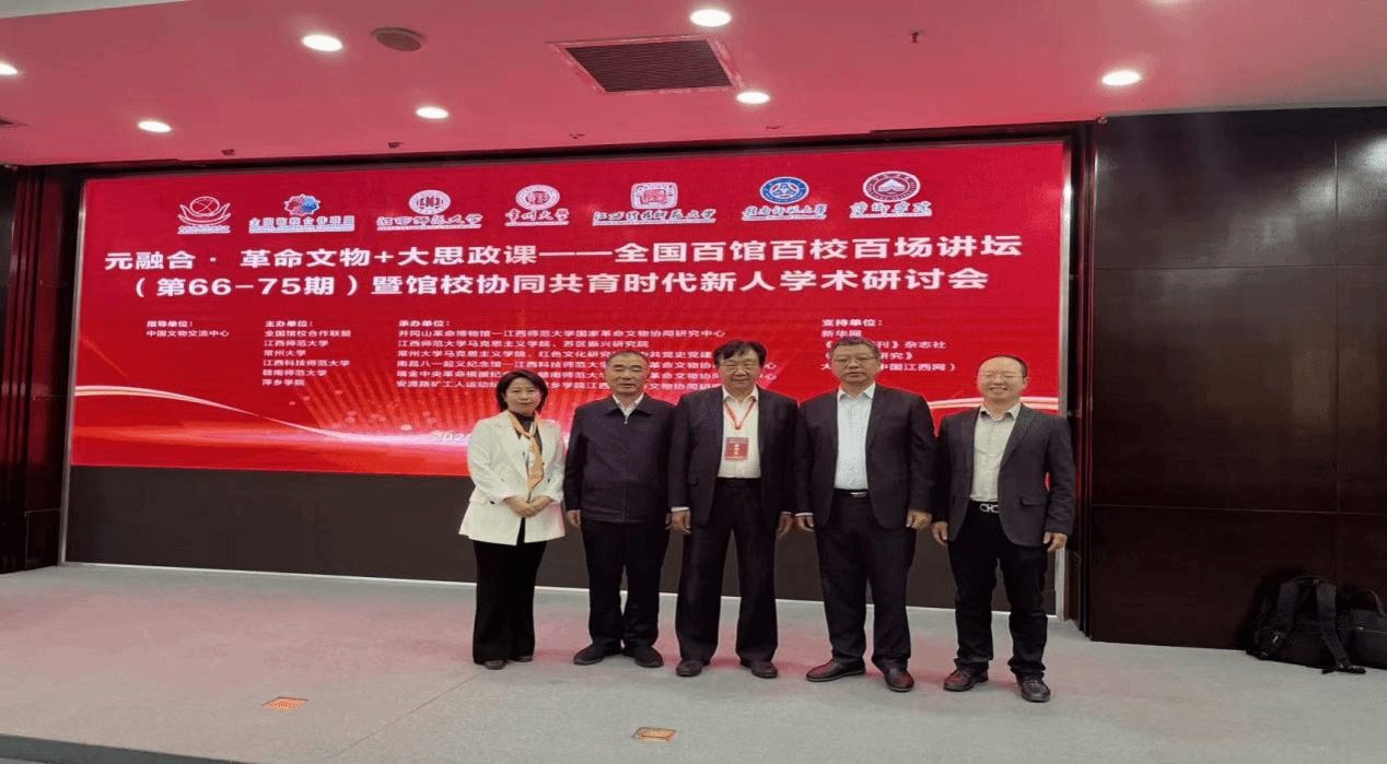 10月27日至28日,“元融合·革命文物+大思政课——全国百馆百校百场讲坛(第66-75期)暨馆校协同共育时代新人学术研讨会”在江西师范大学举行。此次研讨会由全国馆校合作联盟、江西师范大学、常州大学和我校等共同主办,井冈山革命博物馆—江西师范大学国家革命文物协同研究中心、南昌八一起义纪念馆—江西科技师范大学江西省革命文物协同研究中心等单位联合承办。我校党委书记、革命文物协同研究中心主任裴鸿卫、党委副书记刘国云出席会议。