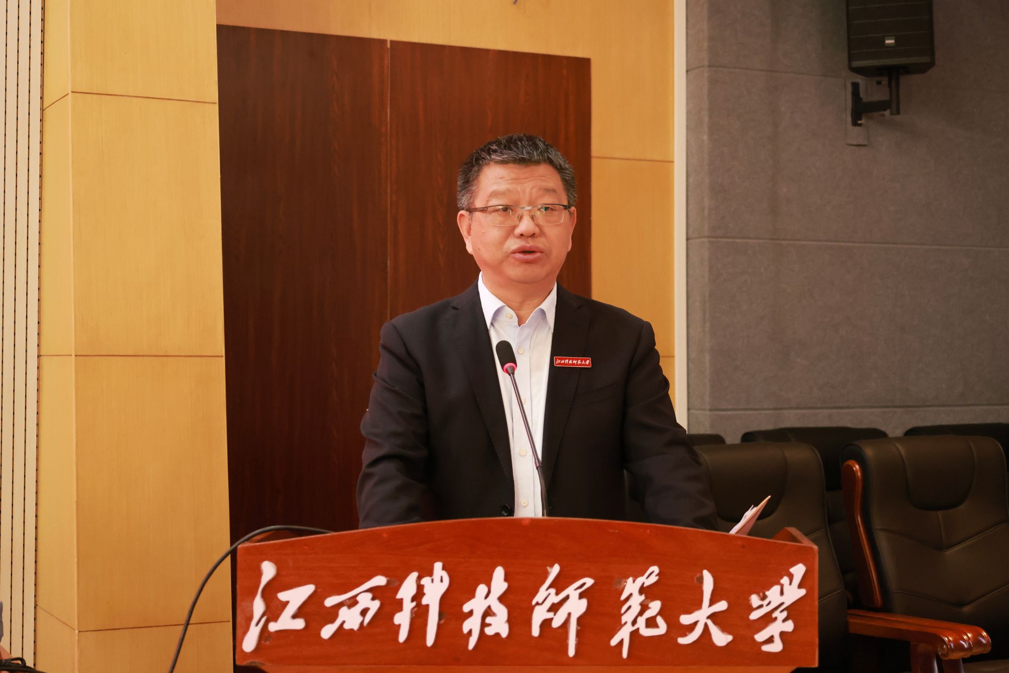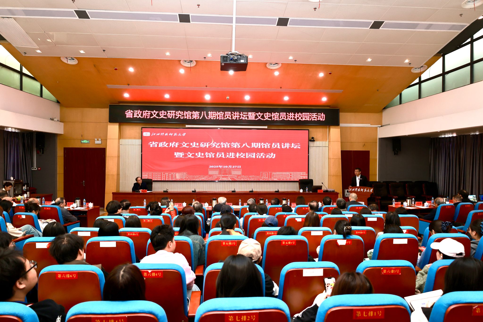 10月27日,省政府文史研究馆第八期馆员讲坛暨文史馆员进校园活动在我校红角洲校区图书馆学术报告厅举行。江西省政府办公厅二级巡视员吴黎宏主持活动,我校党委书记裴鸿卫出席并致辞,党委副书记刘国云出席。