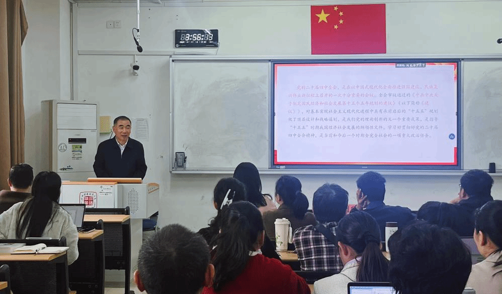 刘国云以“全面学习领会‘十五五’规划建议的指导方针和主要目标”为题,围绕党的二十届四中全会审议通过的《中共中央关于制定国民经济和社会发展第十五个五年规划的建议》(以下简称《建议》)展开系统解读。他从历史方位、现实意义、实践要求三个维度,深刻阐释了《建议》的重大战略价值,强调“十五五”时期是基本实现社会主义现代化夯实基础、全面发力的关键时期,具有承前启后的重要地位。结合《建议》部署,将主要目标凝练为基础目标、手段目标、动力目标、社会目标、终极目标、环境目标和保障目标七个方面,系统梳理了“十五五”时期经济社会发展的丰富内涵与实践路径,为全体教师精准把握教学重点提供了指导。