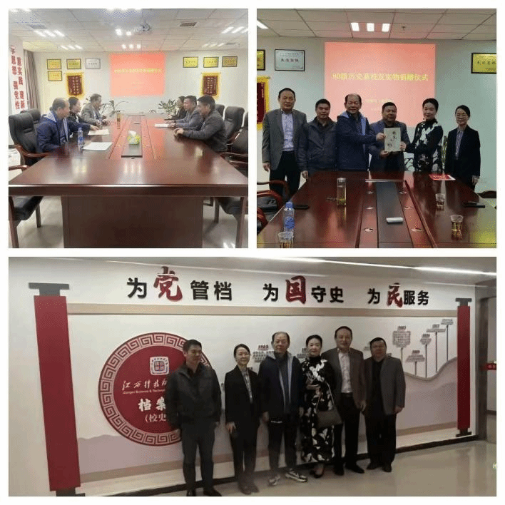 捐赠仪式在红角洲校区图书馆849档案馆会议室举行。宗云彪的同班同学、南昌市豫章中学高级教师廖薇和学校中国共产党建军精神研究院常务副院长、档案馆名誉顾问叶桉教授出席。