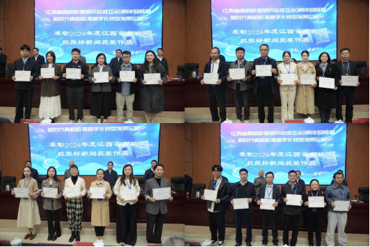 与会领导为2024年度江西省高校校报好新闻获奖高校颁奖,并为深耕校报领域数十年的老报人颁发了荣誉证书。学校9件作品获奖,涵盖了通讯、副刊、消息、版面、融合报道、新闻摄影和评论等多种类型作品,充分展示了学校新闻宣传工作取得的成效。其中舒海平、陈靓的“驻村 助村 兴村——学校驻村帮扶洋港村工作实录”,徐莹的“礼赞科技师大”分别获通讯类、副刊类一等奖;舒海平、谢慧芳的“全国红色文化育人共同体成立仪式暨第四届江西高校大学生红色文化论坛在我校举行”,谢慧芳的“2024年09月30日第01版”,陈靓、王昭、陈思宇的“我的老师成了世界冠军!”分别获消息类、版面类、融合报道类二等奖;陈靓、吴雨晴、陈静怡、胡家龙的“挑战拍一组迎新大片”,刘明新的“李沛昱:从一人到N人,志愿服务或成为生活的一部分传承雷锋精神争做时代新人”,杜诗琪、裘媛萌、万李晗琪的“让传统文化“火”起来”,余诗琪、王奕哲、郑劼妤的“‘优舒来’团队:致力攻克HPV治疗难题”分别获融合报道类、新闻摄影类、评论类、通讯类三等奖。