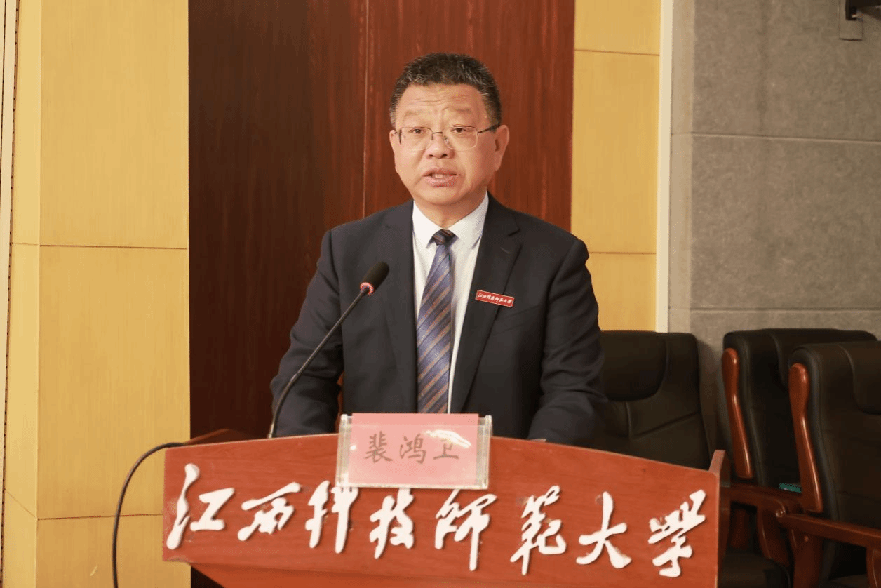 裴鸿卫致辞,他代表学校对出席的嘉宾和专家学者表示欢迎。作为扎根红土地的高校,在2027年南昌起义、秋收起义、井冈山革命根据地创建100周年的历史节点,肩负着特殊使命和责任。一要以“传承者”使命守护红色根脉,将百年蕴含的坚定信仰、斗争智慧与为民情怀,转化为立德树人核心资源,让青年学子在红色浸润中筑牢理想信念;二要以“开拓者”责任激活红色动能,聚焦革命历史研究、红色文化创新,深入挖掘其时代价值,为新时代推进国家治理现代化提供学理支撑;三要以“践行者”担当推动红色赋能,引导师生将红色精神转化为攻坚克难、服务社会的实际行动,彰显红土地高校担当,为以中国式现代化全面推进强国建设、民族复兴伟业输送时代新人。
