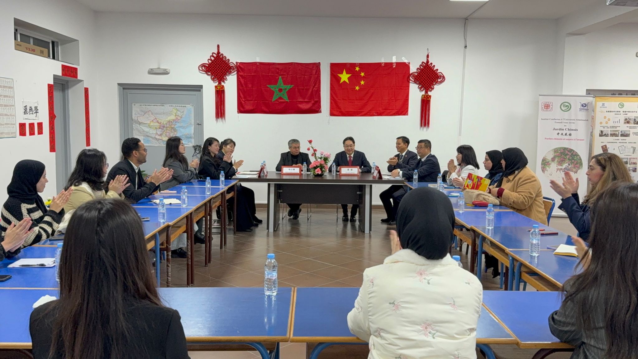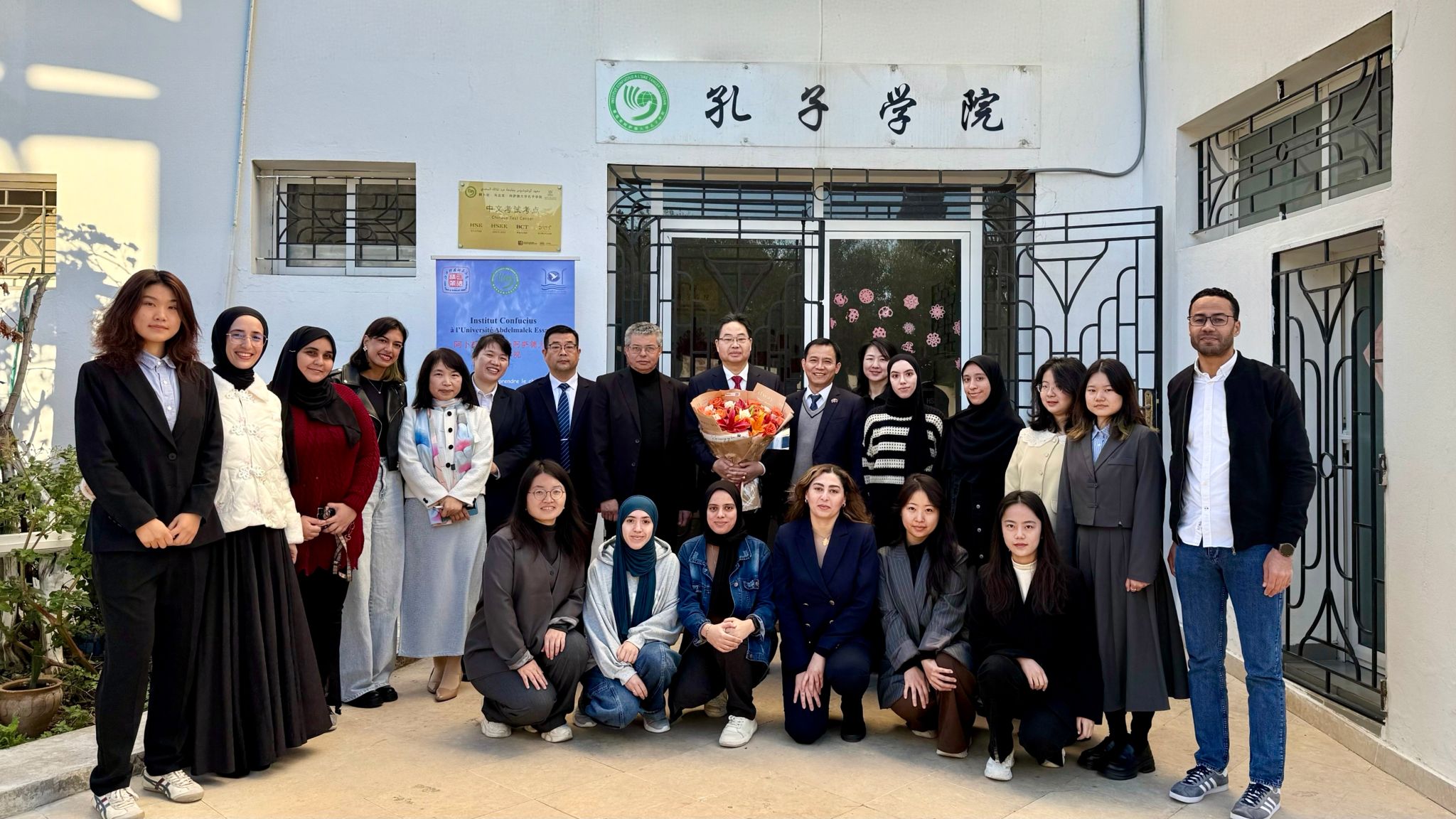 是日上午8:30,出访团走访丹吉尔孔子学院并与师生座谈。孔子学院中方院长朱利勇、外方院长本拿杰巴·哈立德(BENAJIBA Khalid)、本土教师、公派教师、志愿者教师及中文翻译硕士生代表热情迎接。出访团参观了孔子学院教学环境、文化展示空间,深入了解孔子学院在中文教学、中摩文化互鉴、本土师资培养及品牌活动建设等方面的总体发展。