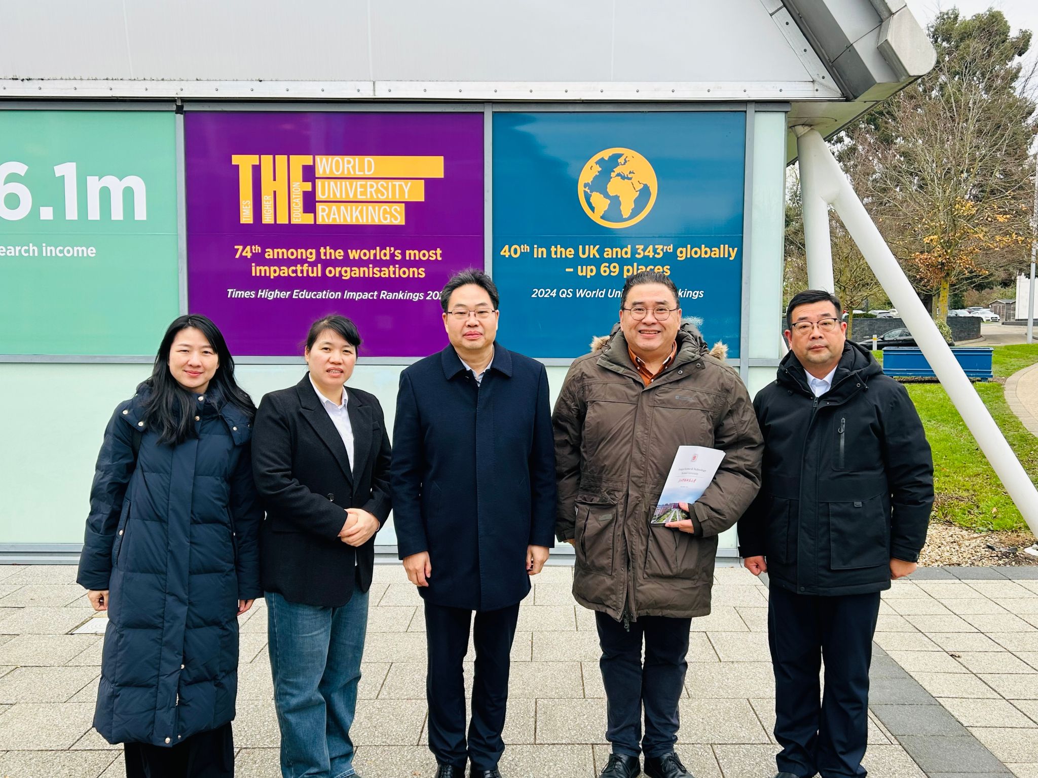 在英国,出访团以巩固原有合作、拓展新的合作为目标,走访了四所高校,了解相关情况,开展合作洽谈。当地时间11月18日上午,出访团刚刚下飞机,便风尘仆仆赶往英国艾芝希尔大学(Edge Hill University),在雨中参观了校园,详细了解该校的办学情况,特别是国际合作交流工作情况,并续签了财务管理专业中外学分互认项目协议,召开了合作座谈会,深入探讨了新的合作模式以及在计算机、人工智能等领域教师互访、新的专业学分互认等新的合作项目。两校合作时间长,合作基础好,于2012年签署合作协议,同意共同举办中外学分互认项目,申报并获批了财务管理和旅游管理专业两个项目,于2013年9月正式招生。迄今共培养8届共694名毕业生。截至今年9月,在读学生数共471人。