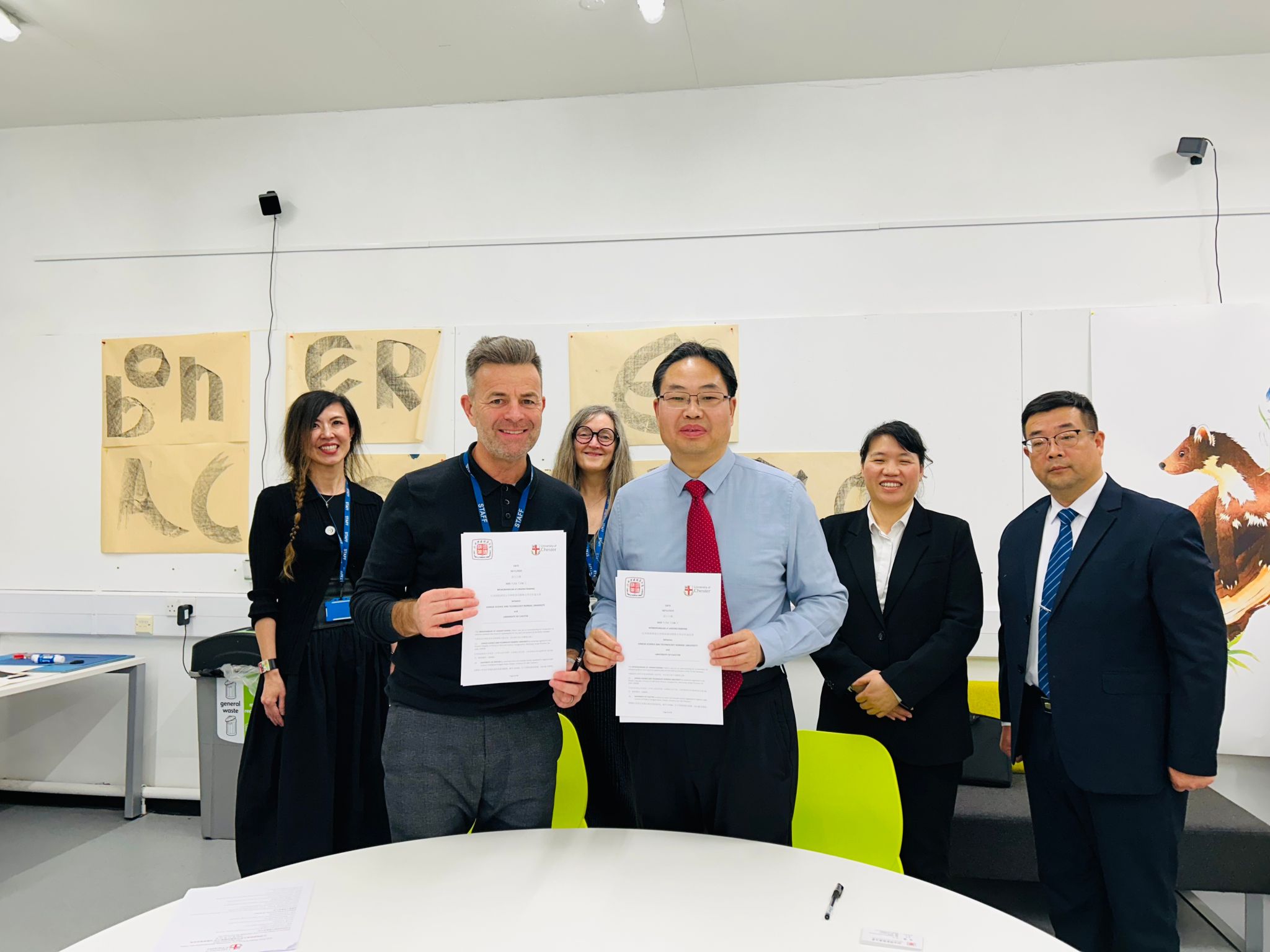 是日下午,出访团访问成立于1839年的英国切斯特大学(University of Chester),该校是英国第一所师范类高等学府,也是英国最古老的综合性公立大学之一。两校在艺术、音乐等方面积极探讨项目合作,深入交流2+2、3+1、4+0合作模式及教师培训、暑期夏令营等项目,并签署合作备忘录。