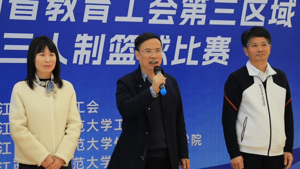 11月29日,由江西省教育工会主办,校工会、体育与健康学院承办,校篮球裁判协会协办的江西省教育工会第三区域教职工三人制篮球赛在我校红角洲校区体育馆举行。副校长李玉保,省教育工会宣教保障部部长罗福云,江西警察学院二级巡视员、工会主席谢山河出席大赛开幕式。