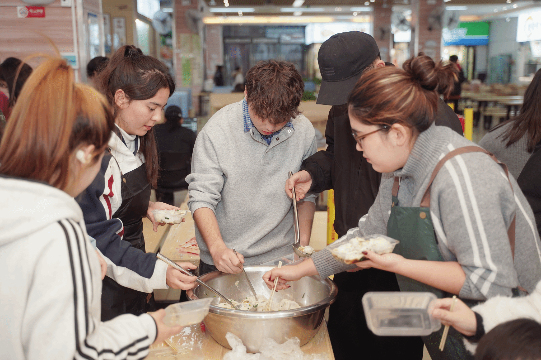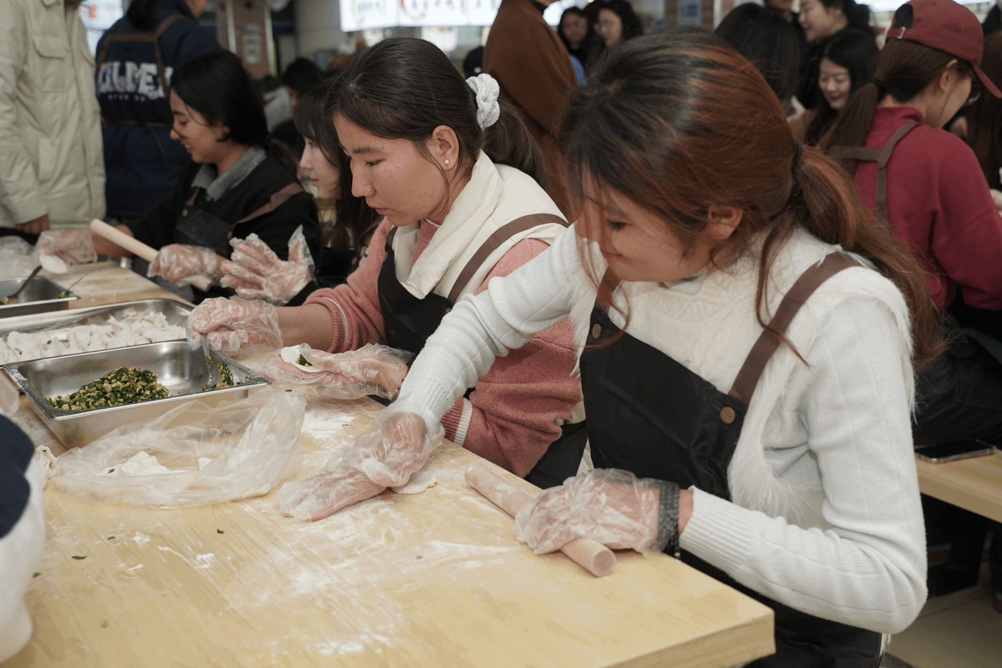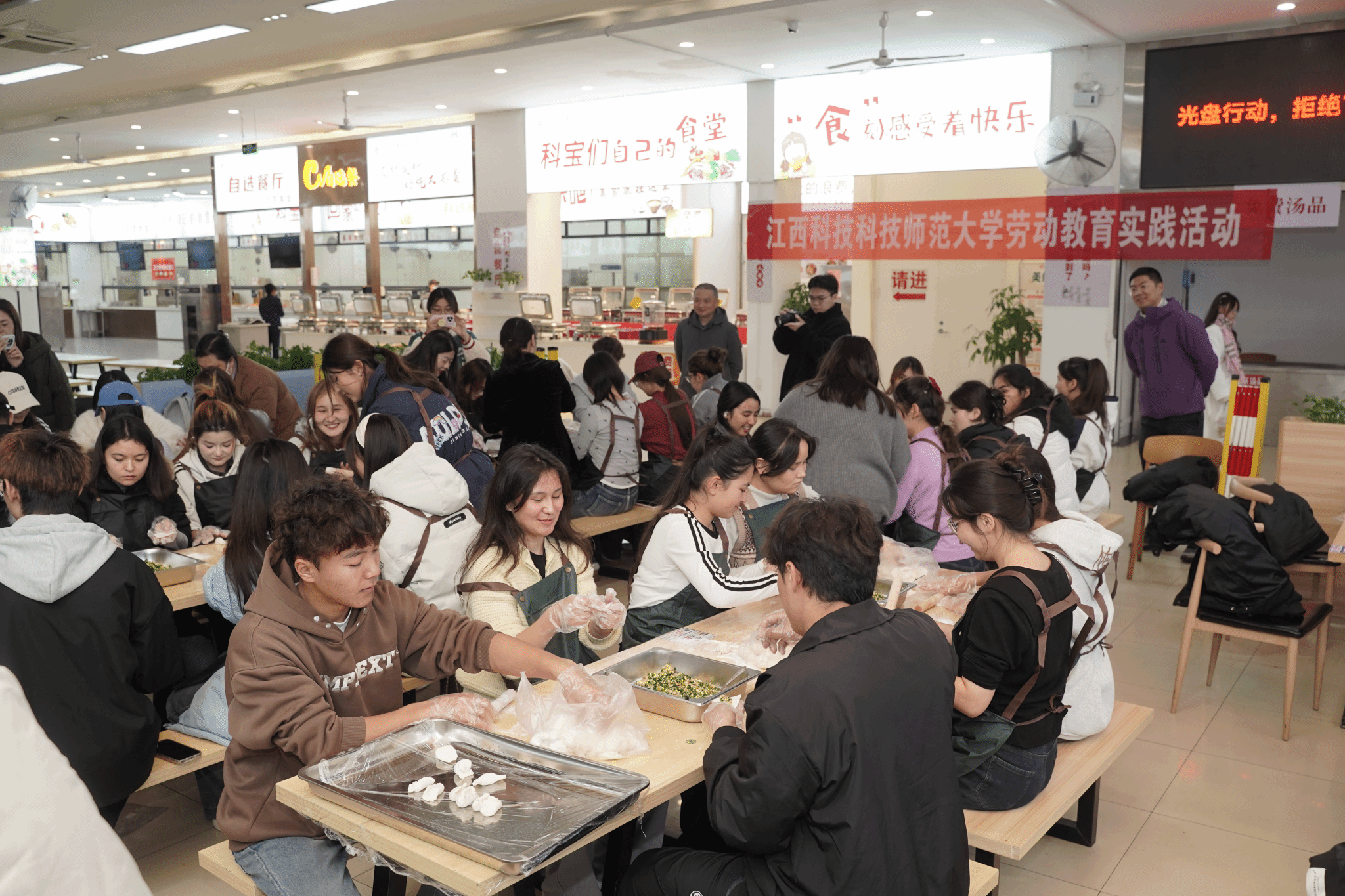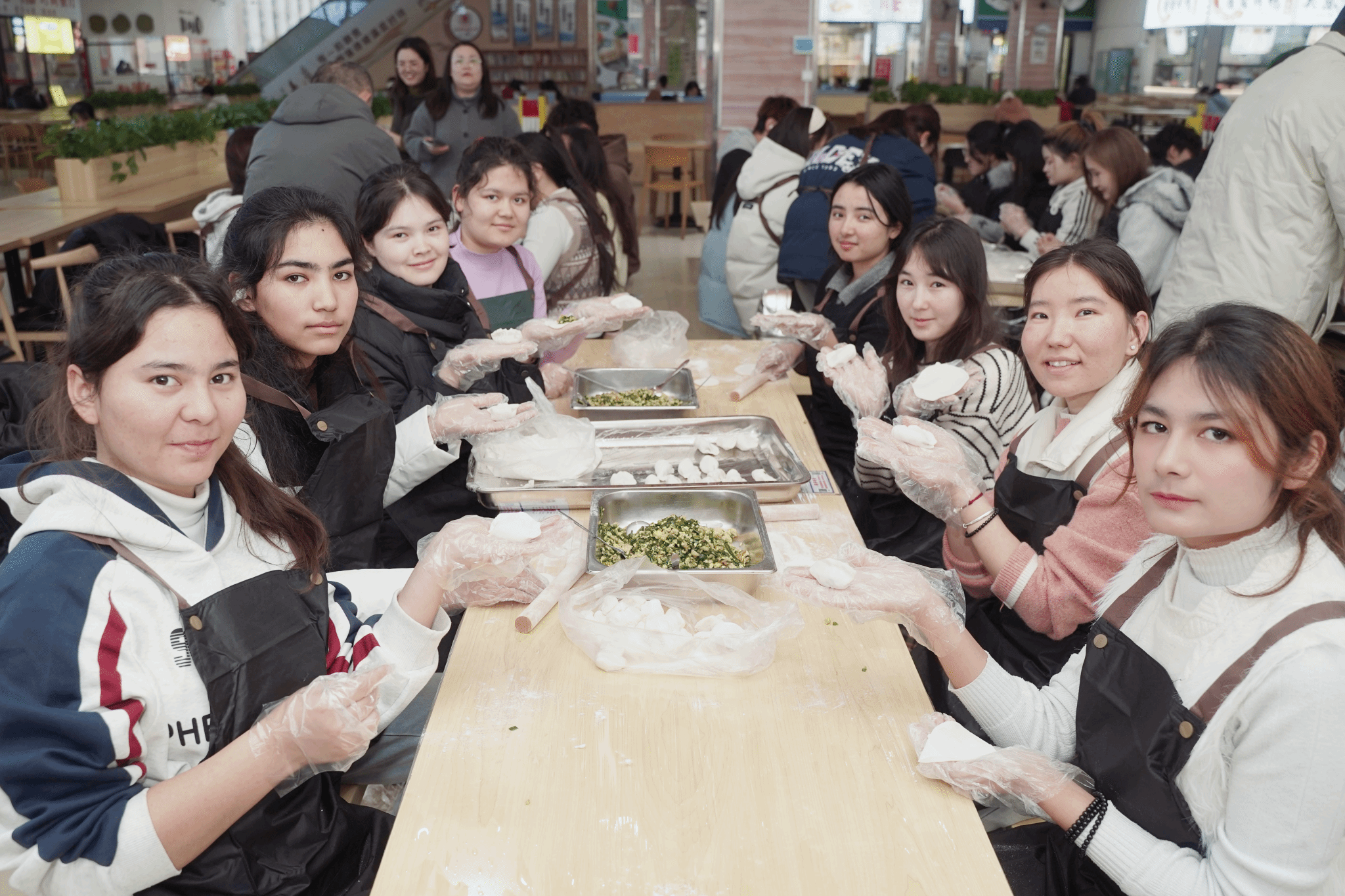 “原来包饺子看着简单,做起来这么有门道!大家一起忙活的感觉真好!”孜拉兰同学感慨道。从手忙脚乱到渐入佳境,从生疏局促到娴熟利落,一只只形态各异的饺子逐渐摆满餐盘,现场欢声笑语不断,各民族同学在协作中拉近了距离,浓浓的民族情谊也在食堂里悄然流淌。