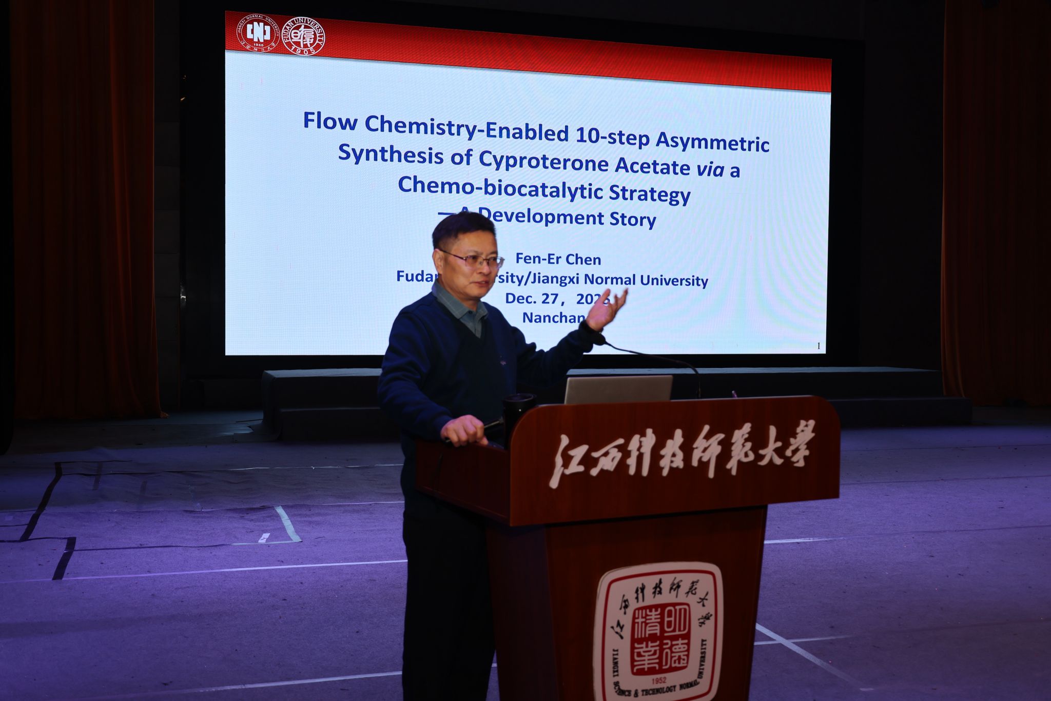 陈芬儿院士以“Flow Chemistry-Enabled 10-step Asymmetric Synthesis of Cyproterone Acetate via a Chemo-biocatalytic Strategy—A Development Story(流动化学助力的10步不对称合成醋酸环丙孕酮:一种化学生物催化策略的研发历程)为题,系统阐述了醋酸环丙孕酮传统合成工艺在步骤冗长、效率较低及安全性不足等方面的局限。他指出,团队通过引入连续流合成平台,并结合化学催化与生物催化协同策略,成功将醋酸环丙孕酮的合成路径优化至仅10步,显著提升了合成效率与过程绿色化水平。该研究充分发挥了连续流技术反应时间短、过程控制精准等优势,为复杂药物分子的工业化合成提供了创新思路。此外,陈芬儿院士还系统介绍了流动化学的基本原理、在药物合成中的应用潜力及其技术特点,并通过关键指标对比,凸显出全连续流工艺在安全性、环保性与合成效率方面的综合优势,进一步印证了连续流合成作为新一代化工生产技术的广阔发展前景。