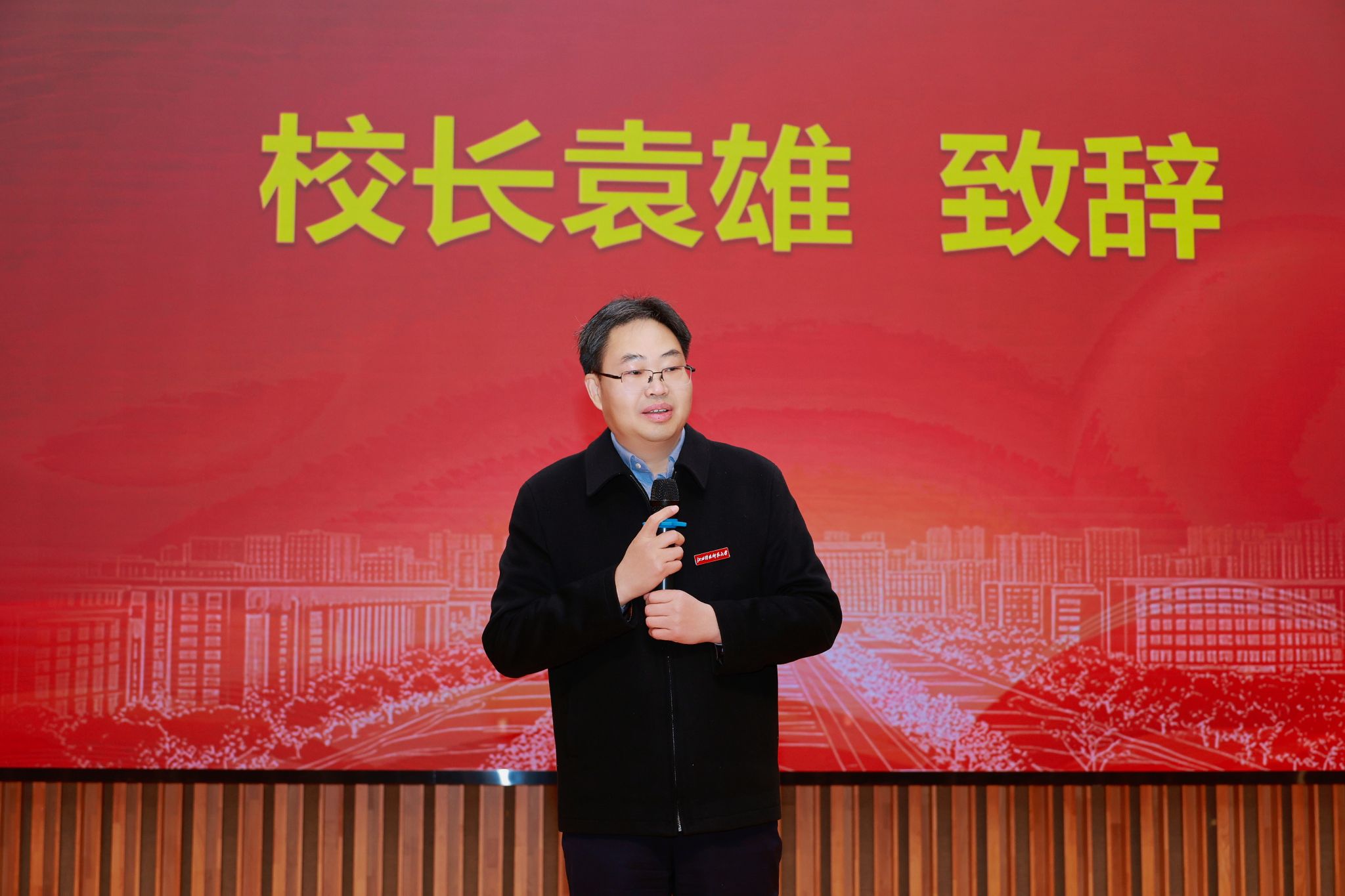 袁雄致辞。他以“数载求学路,一生科师情”“聚作一团火,散作满天星”“凝心聚力干,乘风破浪行”三句话表达了学校与广大校友的深厚情谊,真诚希望校友们一如既往地关心、支持母校发展,和母校携手共进,共同谱写学校美好的明天。他说,“母校承载着每一位学子最真挚的情感记忆。在校时,你们如‘一团火’,积极参与学校的建设与发展,用青春的热情与智慧,为校园增添了蓬勃朝气;毕业后,你们如同‘满天星’,在各个领域、各自岗位上深耕不辍,发光发热。你们将‘明德精业’的校训精神融入实践,在服务社会、推动进步中,生动诠释了科师大人的价值追求与责任担当。这份无论身在何处都心系母校、传承精神的情怀,是我们最宝贵的财富。”袁雄强调,推动学校高质量发展,是全体科师大人共同的历史使命。这需要全校师生员工统一思想、坚定信心,更需要广大校友和社会各界持续关注、鼎力支持。广大师生和校友要凝心聚力,以“乘风破浪”的勇气和“行稳致远”的定力,共同应对前进道路上的挑战,把握时代赋予的机遇,把学校建设成为一所让省委、省政府放心满意,能够有力服务区域经济社会发展战略的大学;让人民群众交口称赞,享有良好社会声誉和品牌形象的大学;让在校师生拥有成就感、获得感,能够实现人生价值与理想的美好家园;让广大校友充满荣誉感、自豪感,永远值得信赖与依托的精神港湾。