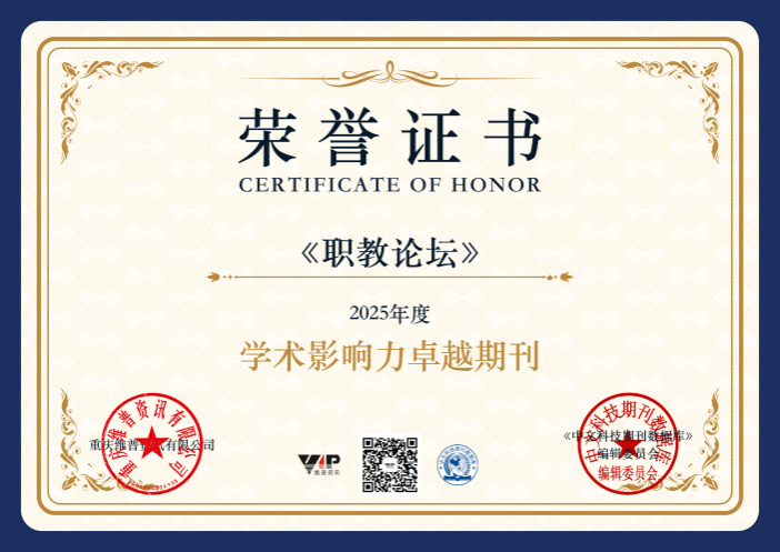 近日,重庆维普资讯、中文科技期刊数据库编辑委员会发布2025年度维普资讯期刊评选结果。我校主办的《职教论坛》凭借优质的办刊质量与广泛的学术影响力,荣获“2025年度学术影响力卓越期刊”“2025年度优秀传播实践期刊”“2025年度维普网最受欢迎期刊”三项殊荣。