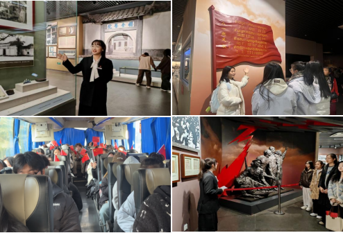 各学院立足学科优势,将专业特色与红色文化深度融合,创新推出一系列沉浸式、互动式活动。旅游与历史文化学院特别设置“青春讲解员”特色环节,各班团支书经过前期精心筹备,以同龄人特有的共情视角与鲜活表达,为同学们生动讲述展陈文物与历史场景背后的深层故事。音乐学院创新设置“流动音乐课堂”互动环节,在返程途中新生自发传唱《映山红》《歌唱祖国》《我和我的祖国》等红色经典,通过“沉浸式+互动式”的传唱形式,将研学感悟融入旋律,让新生在历史场景中感悟革命精神,在音乐表达中传递红色力量,实现了红色文化与专业特色的有机结合。