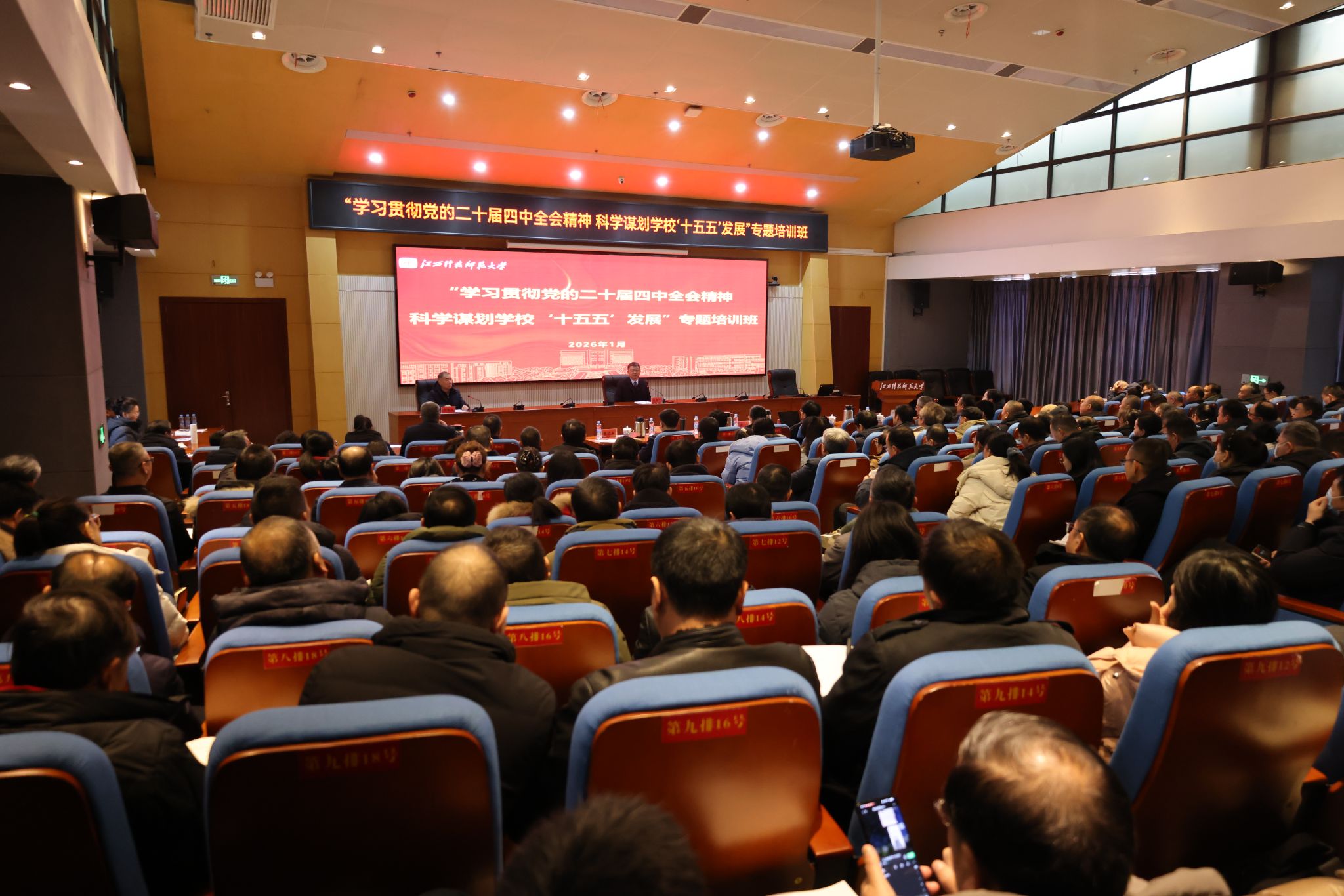 1月21日至22日,学校在红角洲校区图书馆学术报告厅举办“学习贯彻党的二十届四中全会精神 科学谋划学校‘十五五’发展”专题培训。校领导裴鸿卫、袁雄、刘国云、李玉保、郑鹏武、刘刚、吴志远、陈沈平、王小磊、裘指挥,校党委委员曾传晖、余玉荣出席,全校处级干部及挂职干部200余人参加。