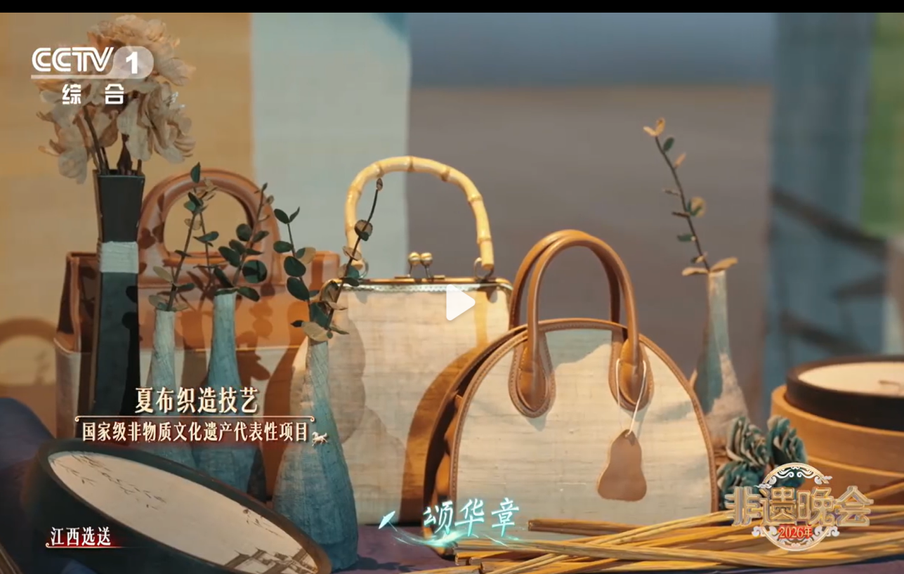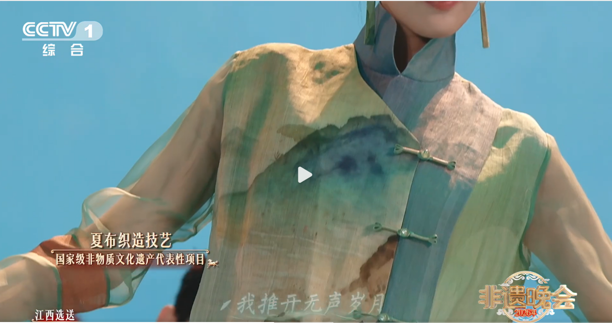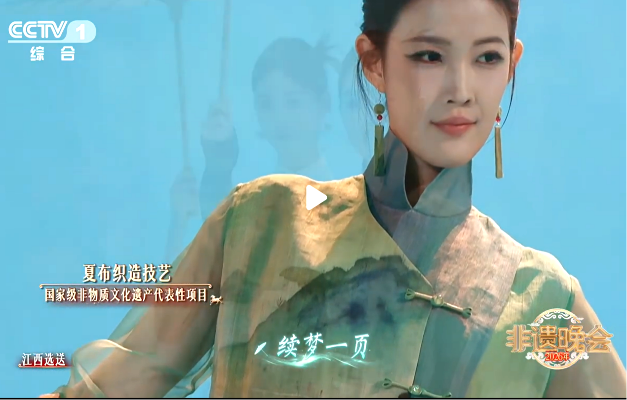近日,由文化和旅游部与中央广播电视总台联合录制的《2026年非遗春晚》落下帷幕。我校美术学院“帛道坊”非遗夏布创新工作室师生设计的系列夏布服装及文创产品,作为江西省选送的代表性非遗创新成果,在晚会上精彩亮相。