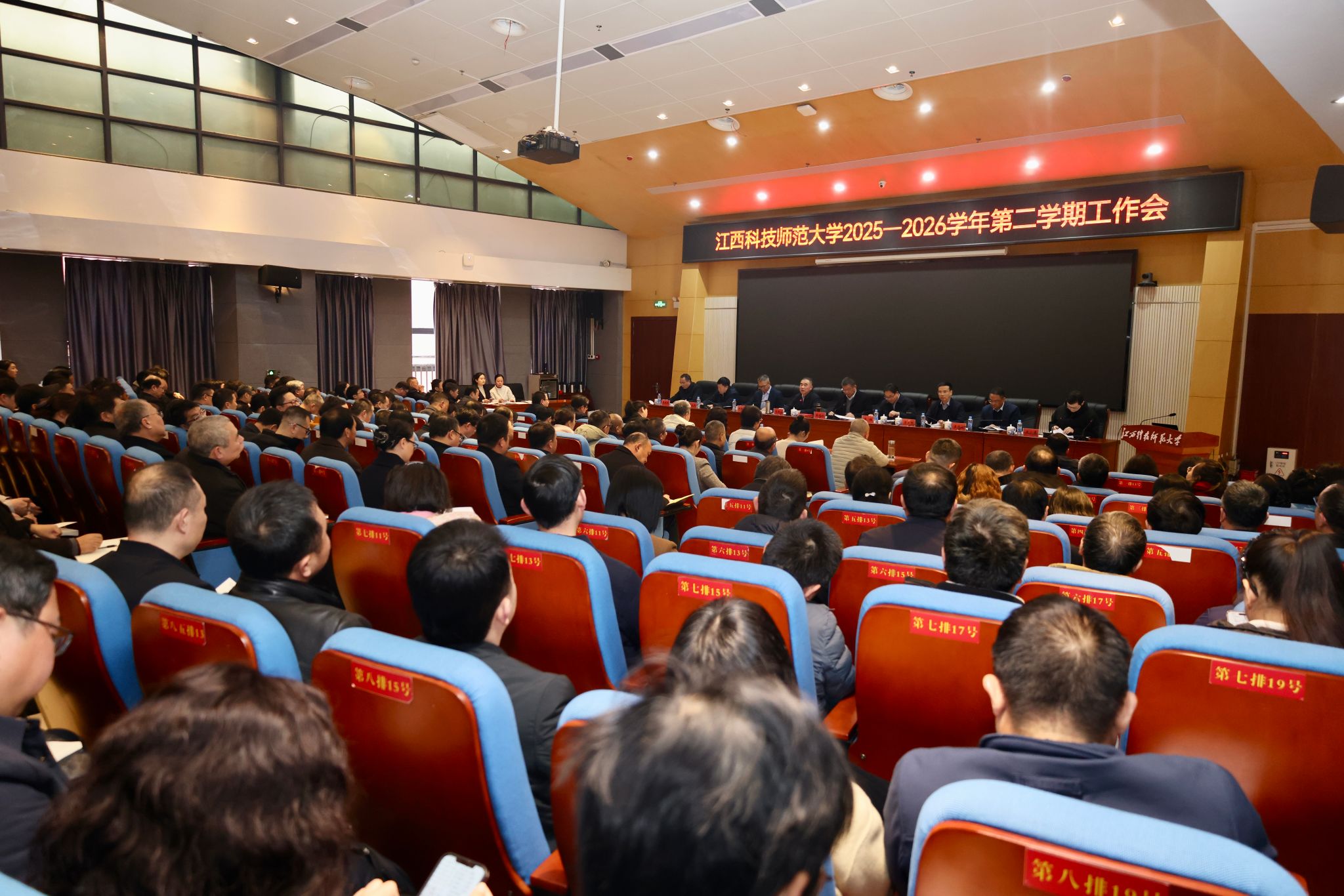 2月28日下午,学校在红角洲校区图书馆学术报告厅召开2025-2026学年第二学期工作会议。校党委书记裴鸿卫,校长袁雄,校党委副书记刘国云,副校长李玉保、郑鹏武、刘刚、吴志远,纪委书记、省监委驻校监察专员陈沈平,副校长王小磊、裘指挥出席。刘国云主持。