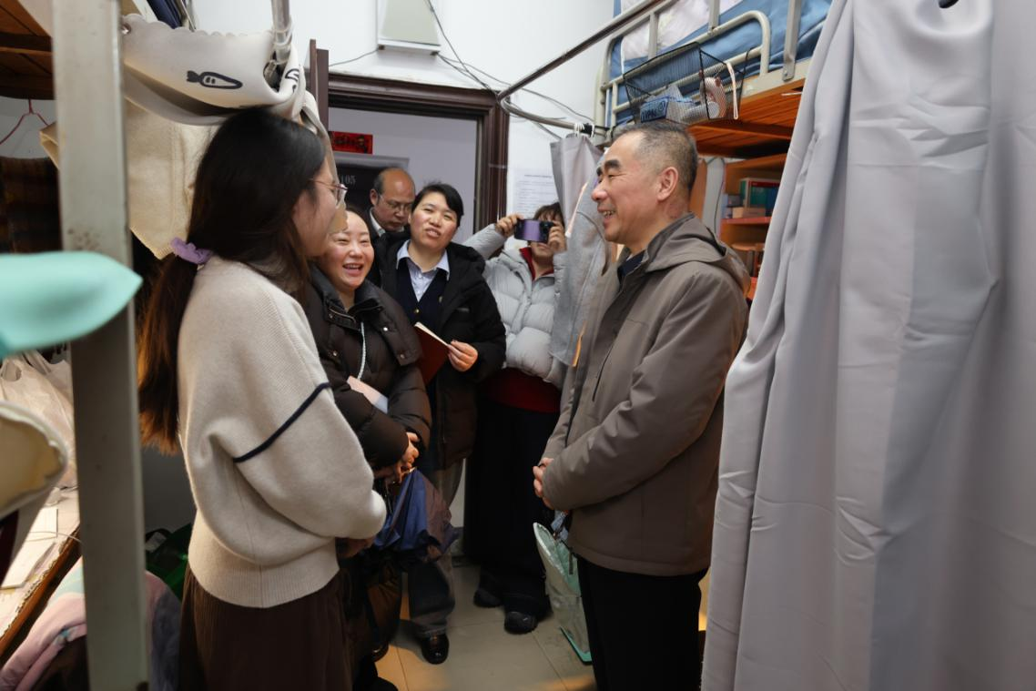 走访过程中,刘国云与同学亲切交谈,耐心询问假期生活、返校适应感受以及新学期的规划,细致了解学生返校后的住宿、饮食、学习等基本情况,主动倾听同学们的困难和诉求,并叮嘱大家要及时调整状态,以饱满热情投入新学期的学习生活。“返程路上顺利吗?”“回校后还有什么困难吗?”……一句句充满烟火气的亲切问候,如春风化雨般传递学校的真诚关怀。