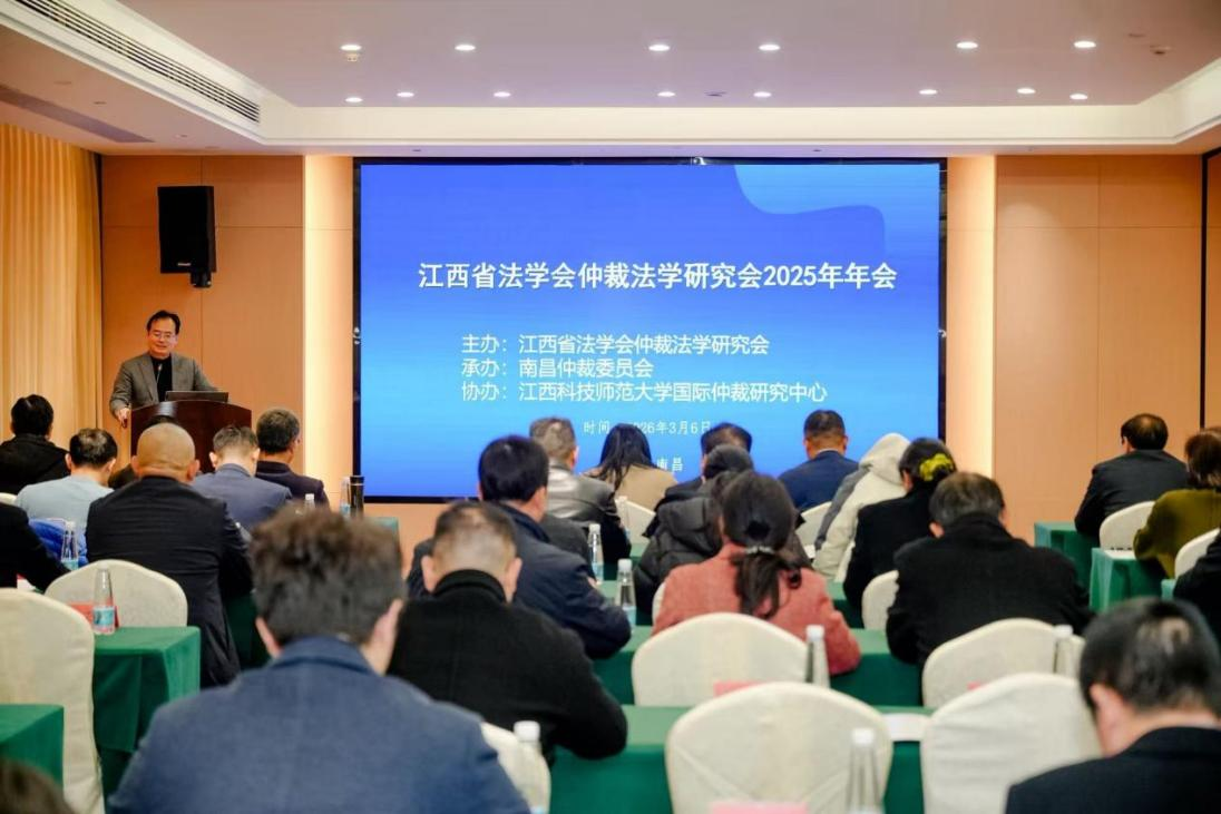 3月7日,江西省法学会仲裁法学研究会在南昌前湖酒店召开2025年年会。本次年会由江西省法学会仲裁法学研究会主办、南昌仲裁委员会承办、我校国际仲裁研究中心协办。江西省法学会相关同志出席并致辞。省仲裁法学研究会理事单位、理事成员及法学专家、学者100余人参加会议。