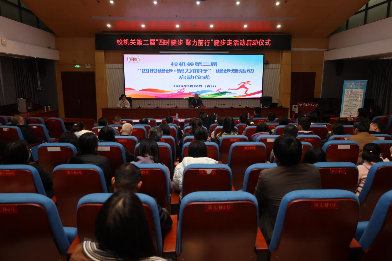 春分时节,草木萌发。为深入贯彻教育部《关于全面推进健康学校建设的指导意见》,落实“健康第一”教育理念,以机关干部带头示范,引领全校师生共建健康校园,3月20日下午,校机关第二届“四时健步·聚力前行”健步走活动启动仪式在红角洲校区图书馆学术报告厅举行。校党委副书记刘国云出席并作动员讲话。校党委党校常务副校长、机关党委书记余良珍主持。