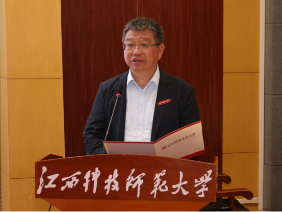 徐景坤介绍了科协的职责,对《科学与科学家故事》一书的出版价值及其在青少年科学素养培育中的作用给予了高度评价。他指出,科学家故事是最生动的科普教材,青年的科学素养决定未来的创新高度,科普是科学与青年的双向奔赴。他表示,江西省科协愿意为同学们搭建更多平台——从科普讲座到科研实践,从科研科普志愿服务到与科学家面对面,让科学的种子在同学们心中真正开花结果。