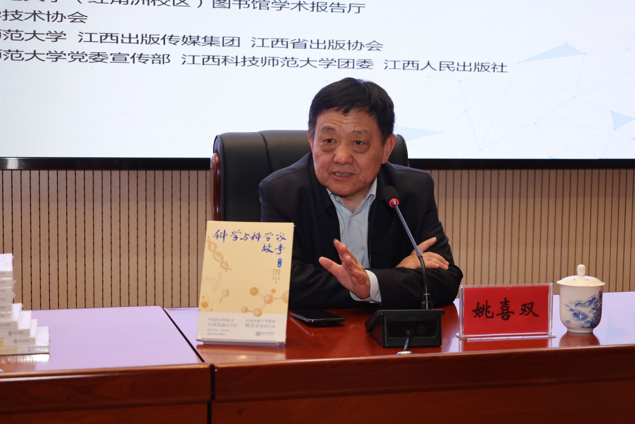4月19日晚,“以科学之光照青年之路——《科学与科学家故事》青春阅读会”在红角洲校区图书馆学术报告厅举行。国家语言文字工作委员会咨询委员、中国语文现代化学会会长姚喜双,江西省科学技术协会主席徐景坤,校党委书记裴鸿卫,江西省出版协会副主席、江西出版传媒集团原副总经理汪维国,江西人民出版社副社长、副总编辑张芝雄出席。副校长郑鹏武主持。